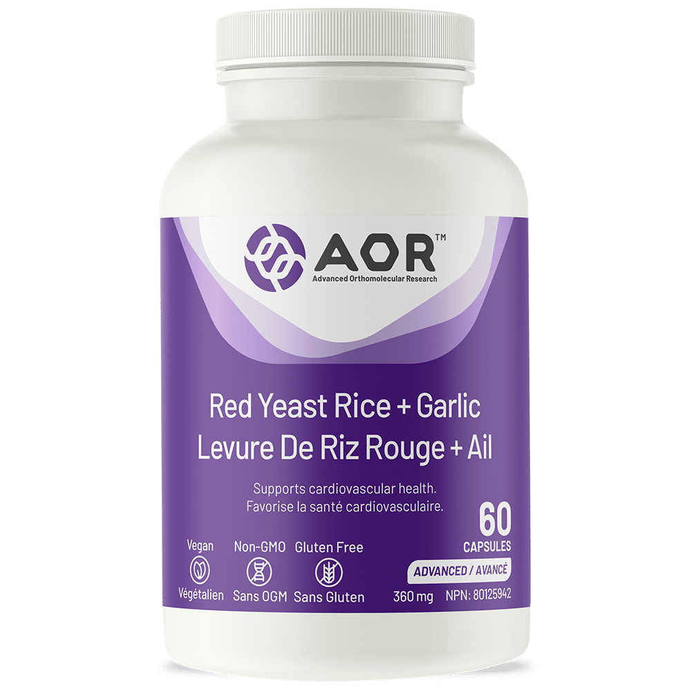AOR’s Red Yeast Rice + Garlic harnesses the complementary relationship of both ingredients to deliver superior results. The primary effect of Red Yeast Rice (RYR) is to provide antioxidants that prevent the oxidation of cholesterol that can lead to the formation of plaques. Oxidized LDL is particularly atherogenic and contributes to plaque formation in the arteries. Antioxidants support healthy blood vessels by maintaining the cholesterol in its normal reduced state. RYR works synergistically with garlic to dilate blood vessels to allow for smooth blood flow to reduce fats in blood depositing in blood vessels.