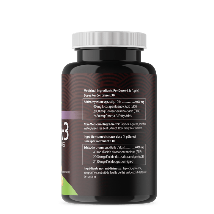 AquaOmega's High DHA Vegan Algae Oil is the highest concentrated plant-based Omega-3 supplement on the market today. Algae oil is the only plant-based source of Omega-3s that contains both essential fatty acids that are vital for your health. It provides the same benefit as fish oil and is a great choice if you don't eat fish. The premium algae oil comes in an easily digestible triglyceride form.