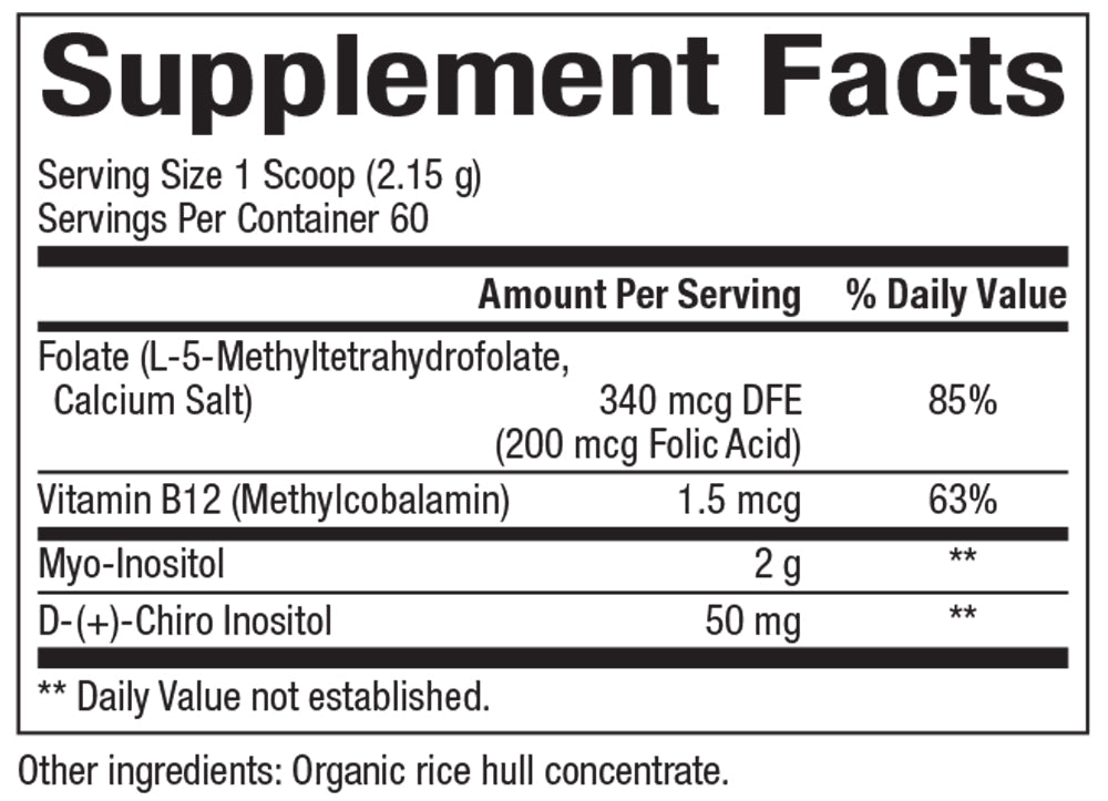 - Provides recommended 40:1 ratio of myo-inositol to D-chiro-inositol