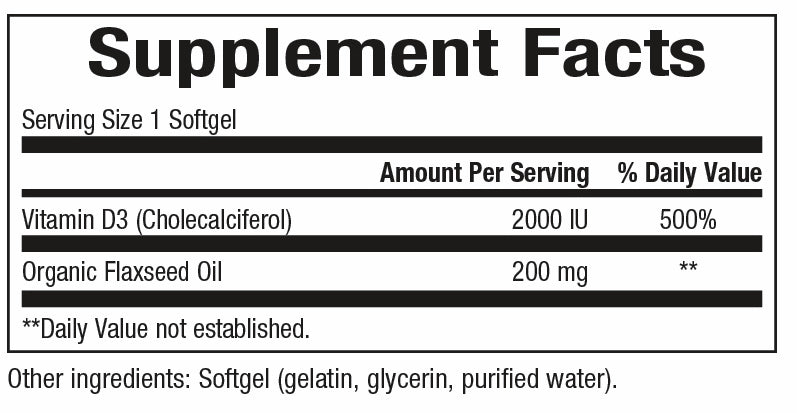 Bioclinic Naturals Vitamin D3 is carefully blended with organic flaxseed oil delivered in a bioactive easy-to-swallow softgel. Vitamin D3, which is the same form found in fish oil and eggs, is the form produced by sunlight in the human skin, Vitamin D helps in the development and maintenance of bones and teeth. Vitamin D also plays an important role in immune health and overall general health.
