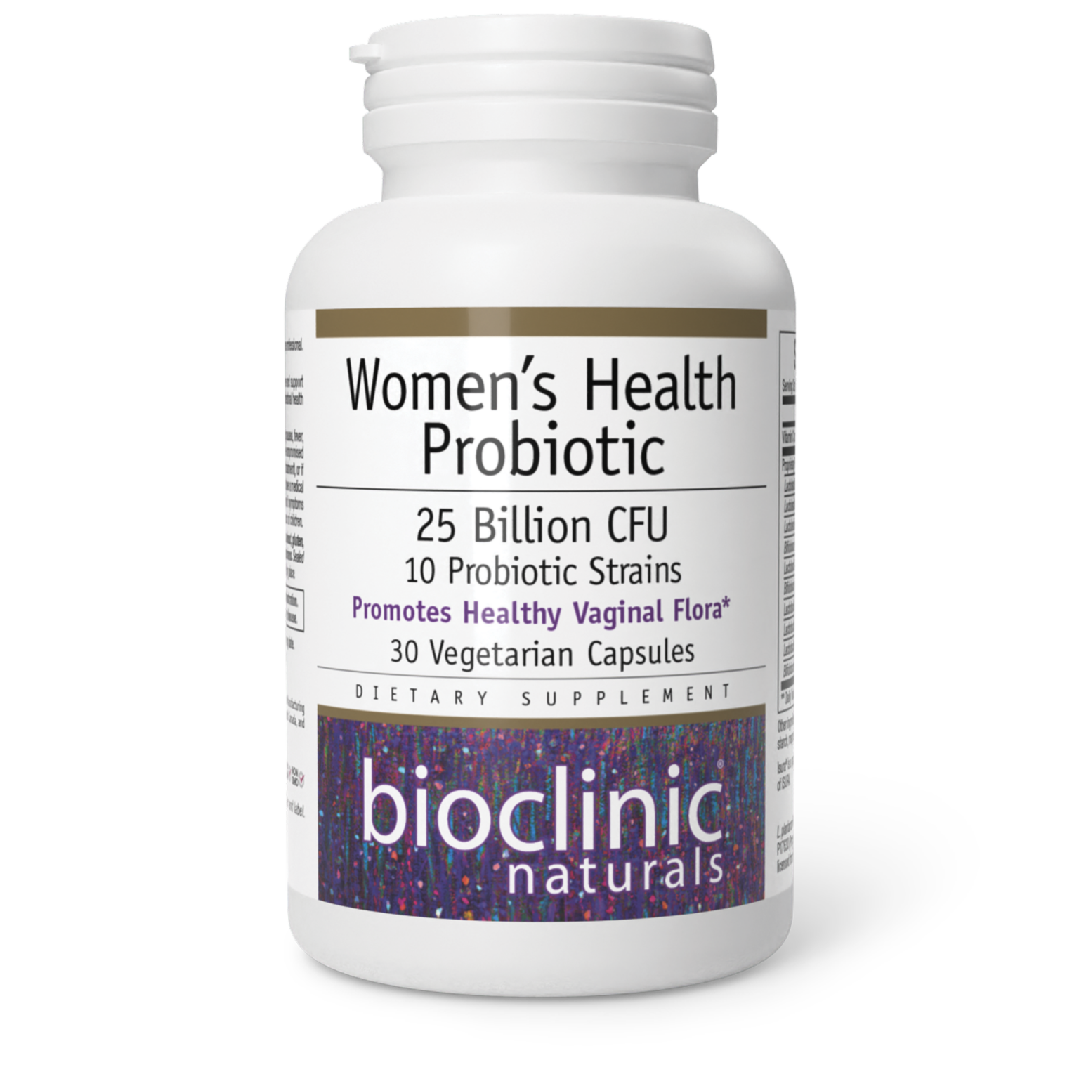Women's Health Probiotic from Bioclinic Naturals provides a unique combination of multi-species probiotics that are clinically studied strains to support and maintain a healthy vaginal microbiome as well as support gastrointestinal health.