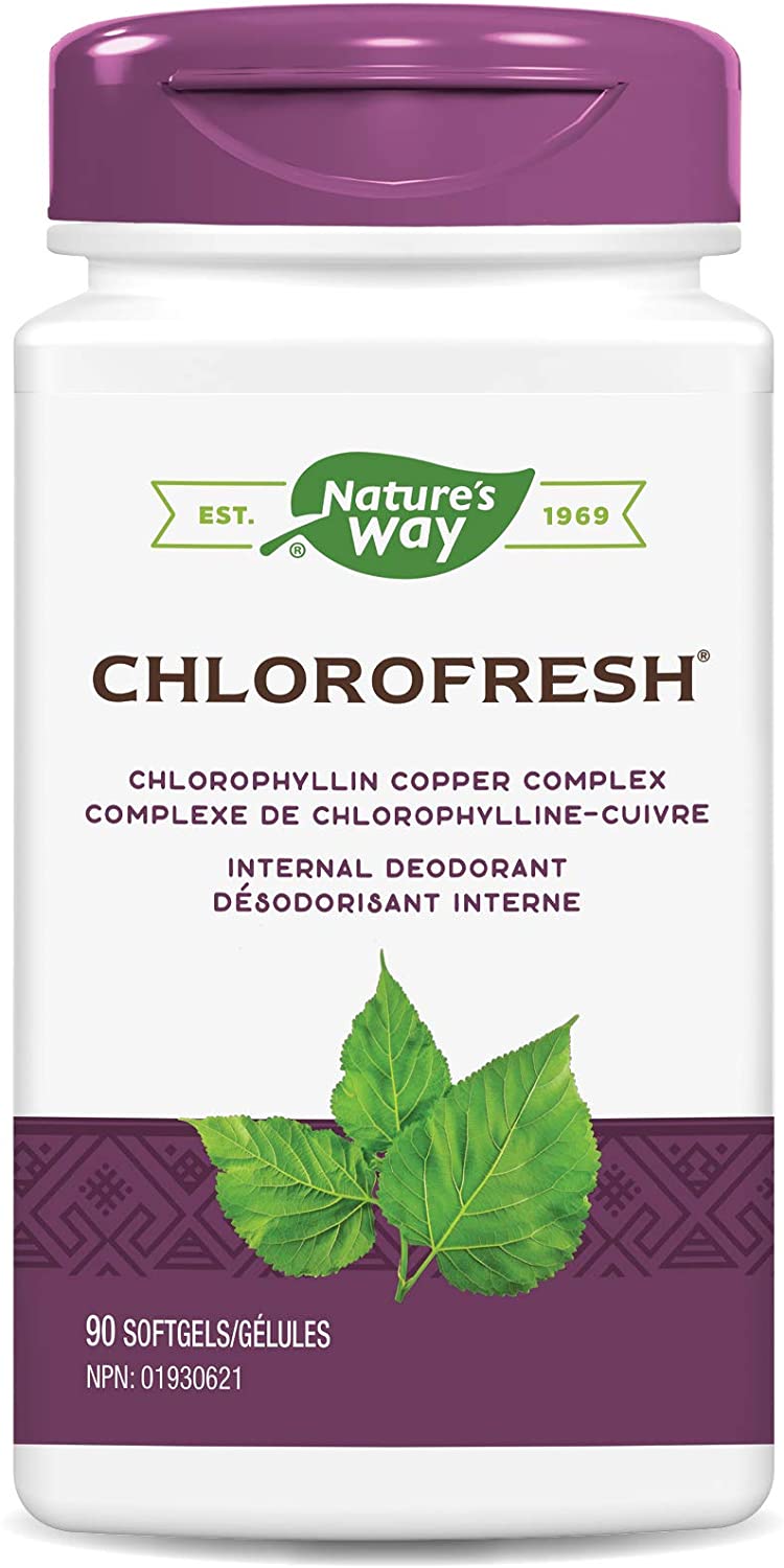 Nature's Way Chlorofresh is a chlorophyllin complex that is water-soluble for use as an internal deodorant.