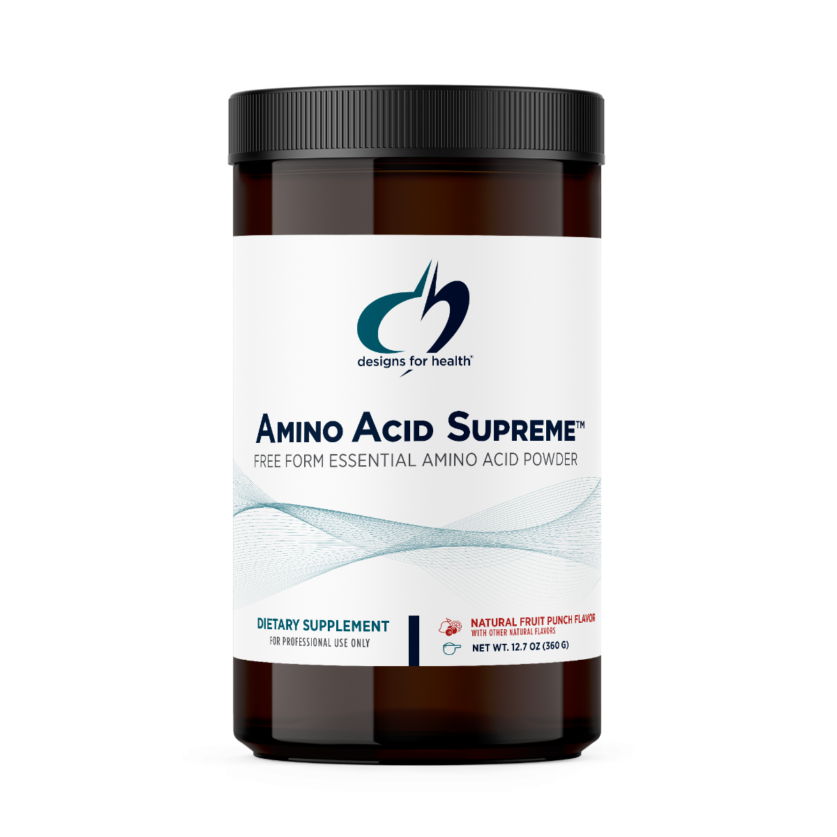 Amino Acid Supreme is a balanced, amino acid formula in a great tasting fruit punch flavored powder. It provides essential amino acids in their free form, which makes them immediately available for absorption and allows them to be set for metabolic use much more readily and rapidly than amino acids contained in dietary protein. Alpha-ketoglutarate and vitamin B6 (as pyridoxal-5-phosphate) are included for superior amino acid absorption and bioavailability. Amino Acid Supreme has a fruit punch flavor, contains zero grams of sugar, and is sweetened with stevia.