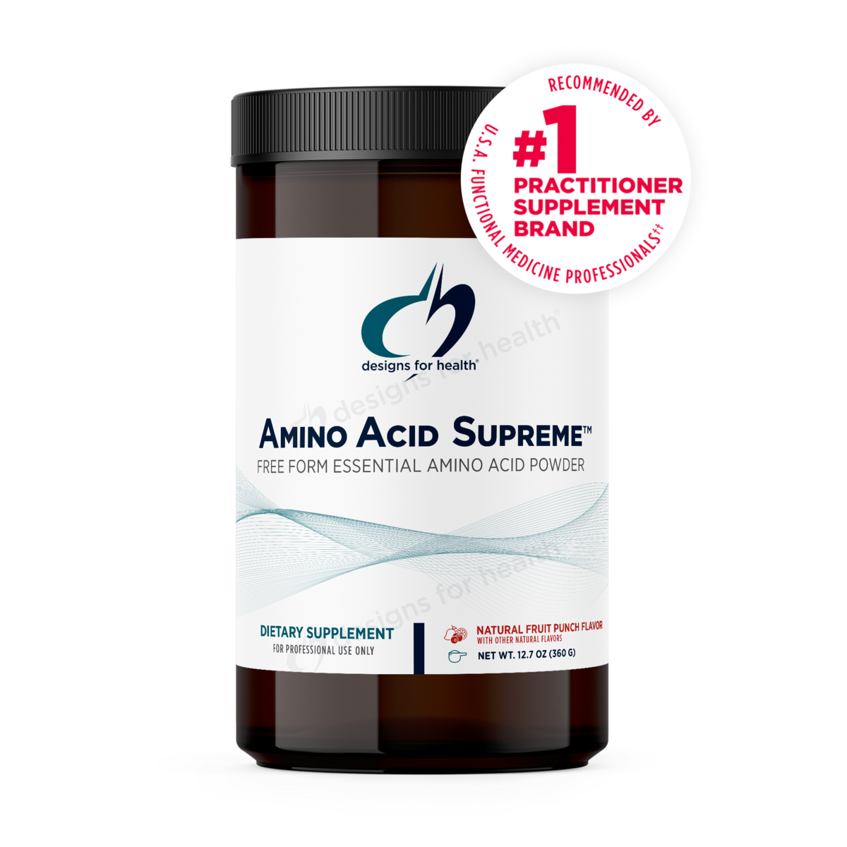 Amino Acid Supreme is a balanced, amino acid formula in a great tasting fruit punch flavored powder. It provides essential amino acids in their free form, which makes them immediately available for absorption and allows them to be set for metabolic use much more readily and rapidly than amino acids contained in dietary protein. Alpha-ketoglutarate and vitamin B6 (as pyridoxal-5-phosphate) are included for superior amino acid absorption and bioavailability. Amino Acid Supreme has a fruit punch flavor, contains zero grams of sugar, and is sweetened with stevia.
