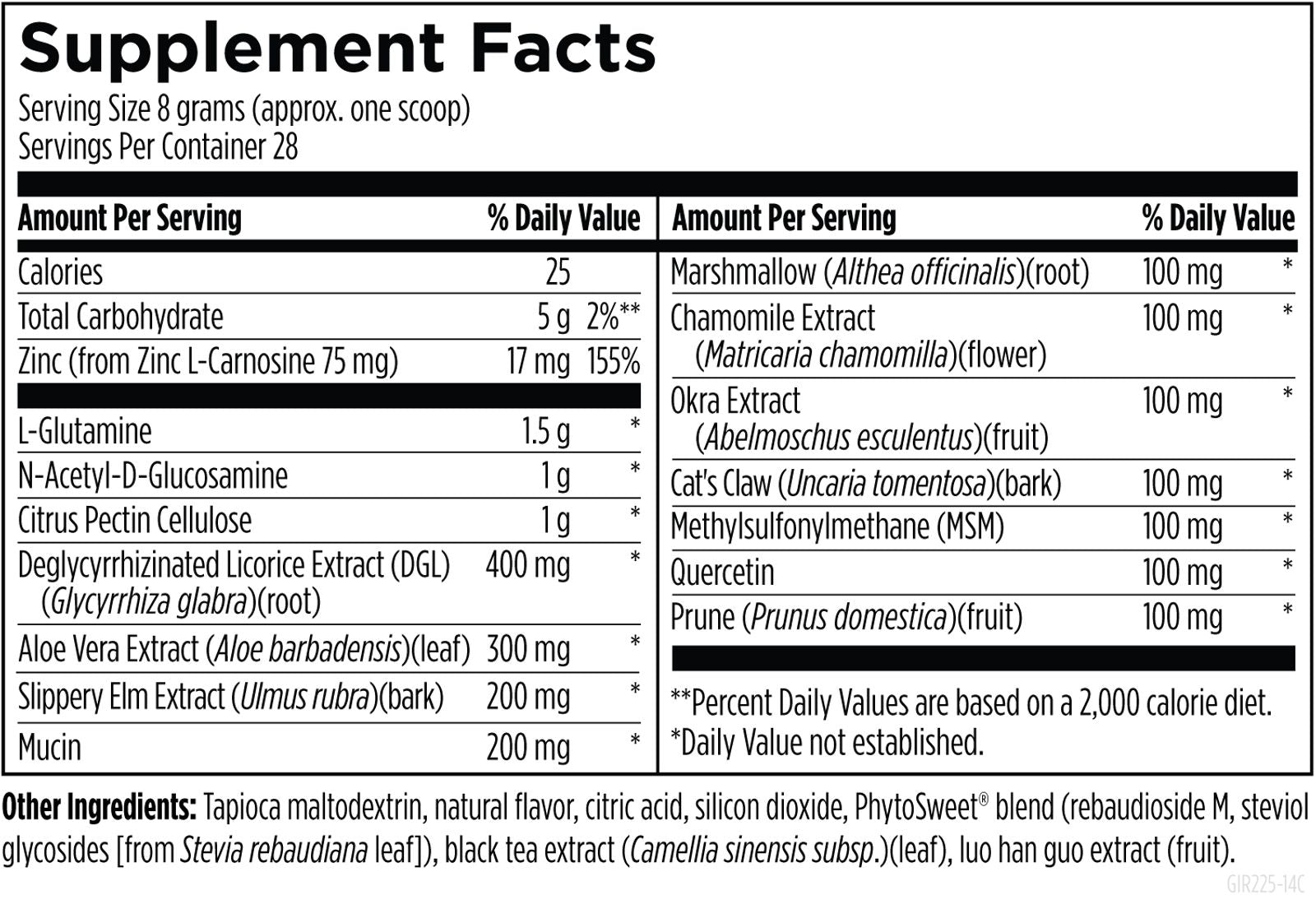 GI Revive is a 15 in 1 formula featuring specific nutrients and botanicals to offer comprehensive support for gastrointestinal (GI) health and integrity. The lining of the GI tract must be permeable enough for nutritional absorption, yet also provide a barrier against toxins, allergens, and certain microbes. The ingredients in this formula support healthy intestinal function by coating and soothing the GI lining and promoting the body’s natural GI repair process. It is also provided in a convenient powdered form that is sweetened with stevia leaf and monk fruit extract and can be mixed into any beverage or functional food powder. GI Revive supports GI tract health, a healthy inflammatory response, and healthy intestinal function and regularity.