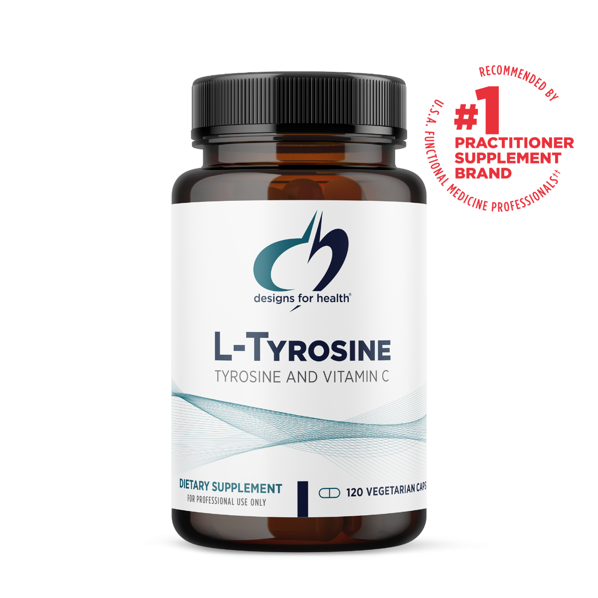Tyrosine is a non-essential amino acid synthesized in the body from the amino acid phenylalanine. It is a precursor to thyroid hormones and dopamine, which play a vital role in metabolism, stress response, energy production, reward, and motivation. This formula provides 1,200 mg of tyrosine for its role as a cofactor in neurotransmitter production, along with added vitamin C, another required cofactor involved in the conversion of tyrosine to dopamine. Tyrosine is ideally taken on an empty stomach or 2 hours before a protein-containing meal to avoid competition with other amino acids for absorption.