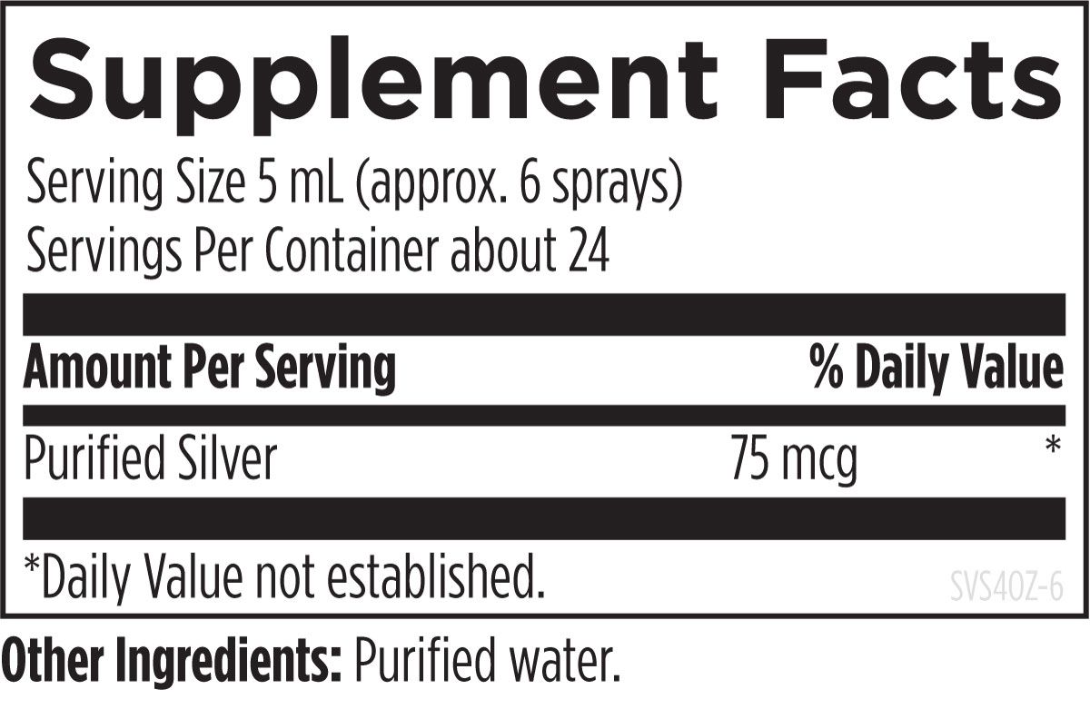 Silvercillin is a highly effective preparation composed of pure silver complexed with purified water. Silvercillin uses Silver Sol Technology — the term “sol” being a designation of a mineral permanently distributed into the structure of water. The silver permanently becomes a part of that water molecule, so that it will not fall out of the solution or suspension. Silvercillin contains 15 ppm of purified silver per serving. This is an incredibly powerful, non-toxic form of silver, which will not build up in the body, so it does not cause argyria (also known as "blue man syndrome").