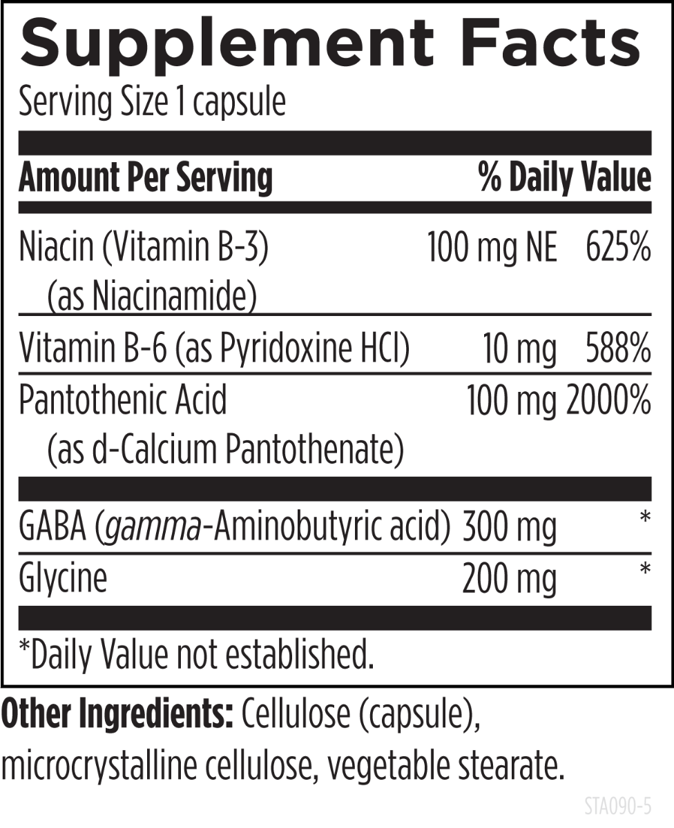 StressArrest is a uniquely formulated product that provides gamma-aminobutyric acid (GABA), a key neurotransmitter in the body involved in a normal, calm stress response. In addition, it supplies other nutrients involved in normal neurotransmitter production including glycine, niacinamide, pantothenic acid, and vitamin B6.