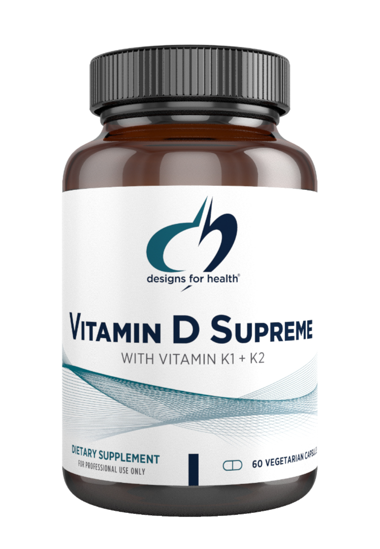 Vitamin D Supreme provides clinically useful amounts of vitamin D3 and vitamin K (both K1 and K2 [as MK-4]), along with geranylgeraniol (GG), a substance produced naturally in the body, to promote optimal bone and arterial health and to maintain the immune system in proper balance. The amount of vitamins D and K in this formula may be beneficial for those who do not receive adequate sun exposure and/or dietary sources of these vitamins. Vitamins D and K work synergistically, thus, increasing vitamin D increases the need for vitamin K.