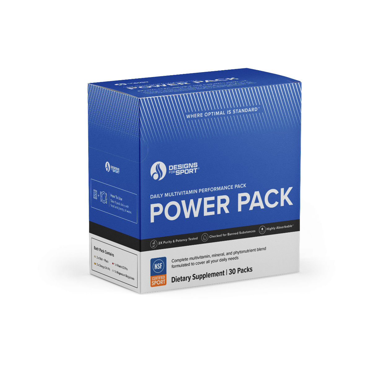 Upgrade your vitamin routine with Designs for Sport™ Power Pack - the cornerstone for any serious athlete’s supplement stack. Build a stronger foundation with convenient all-in-one packets developed to cover all the critical nutritional gaps that may affect any athlete’s performance. Each packet contains: 1 x Magnesium Bisglycinate, 1 X Vitamin D3 Pro Softgel, 2 x Omega-3 Hi-Po and 2 x Multi + Phyto.