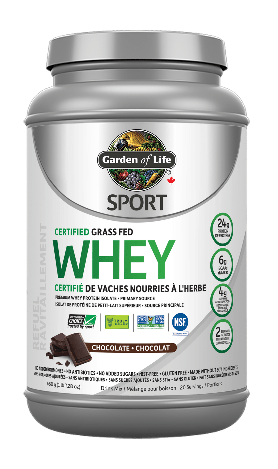- 24g grass fed whey protein, 6g BCAAs, 4g Glutamine & Glutamic Acid