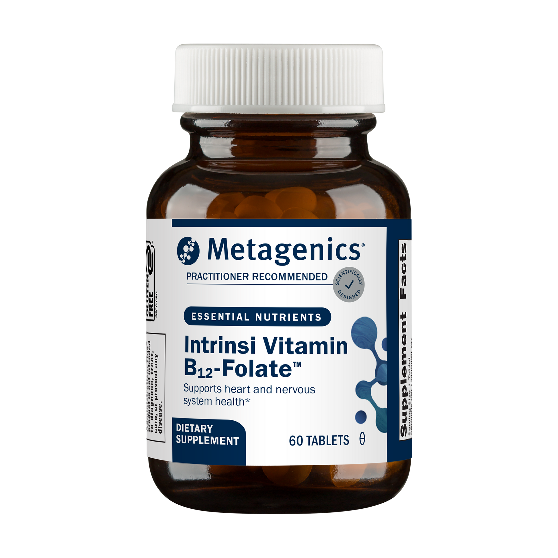 Intrinsi B12-Folate features vitamin B12 and folate in combination with intrinsic factor for enhanced absorption and utilization. These nutrients help promote nervous system function and cardiovascular health.