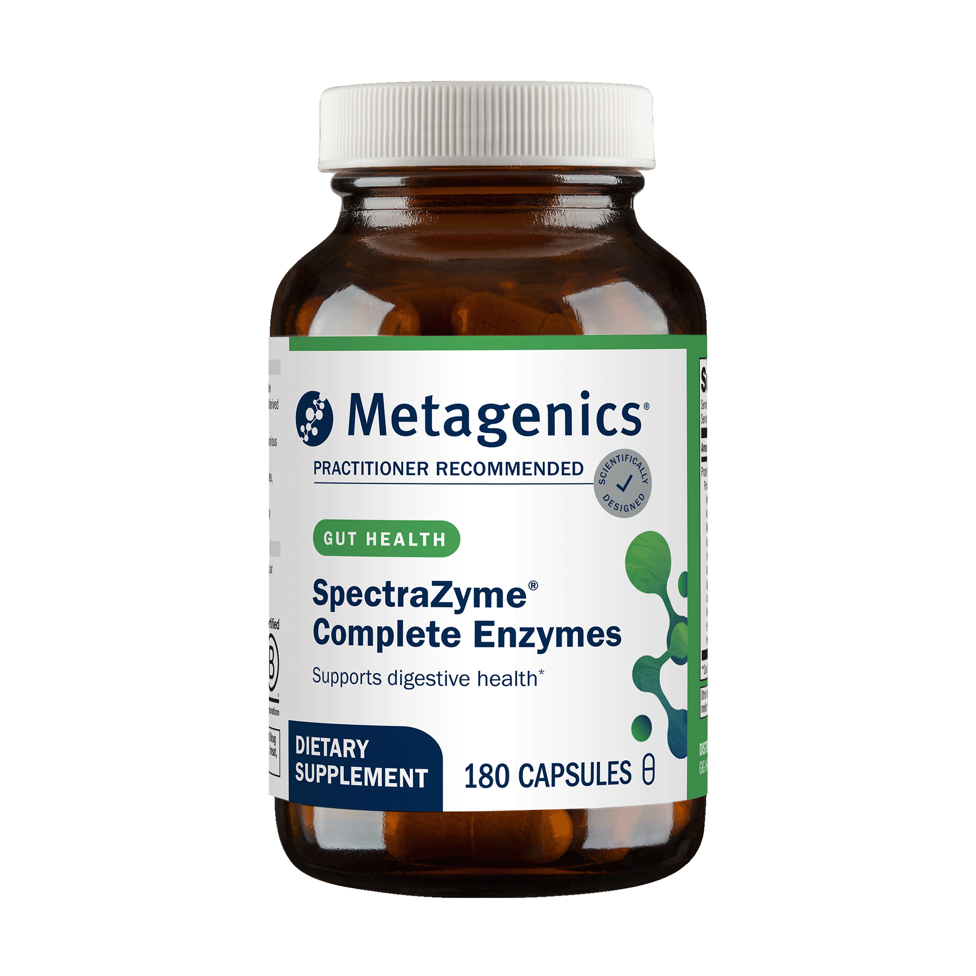 SpectraZyme Complete Enzymes—formerly SpectraZyme Complete—provides digestive support with a non-GMO, broad spectrum of non-animal derived enzymes including acid stable lipase and three proteases that function in different pH ranges. This comprehensive enzyme complex is designed to support the healthy digestion of proteins, peptides, carbohydrates, fats, cellulose, maltose, lactose, and sucrose.