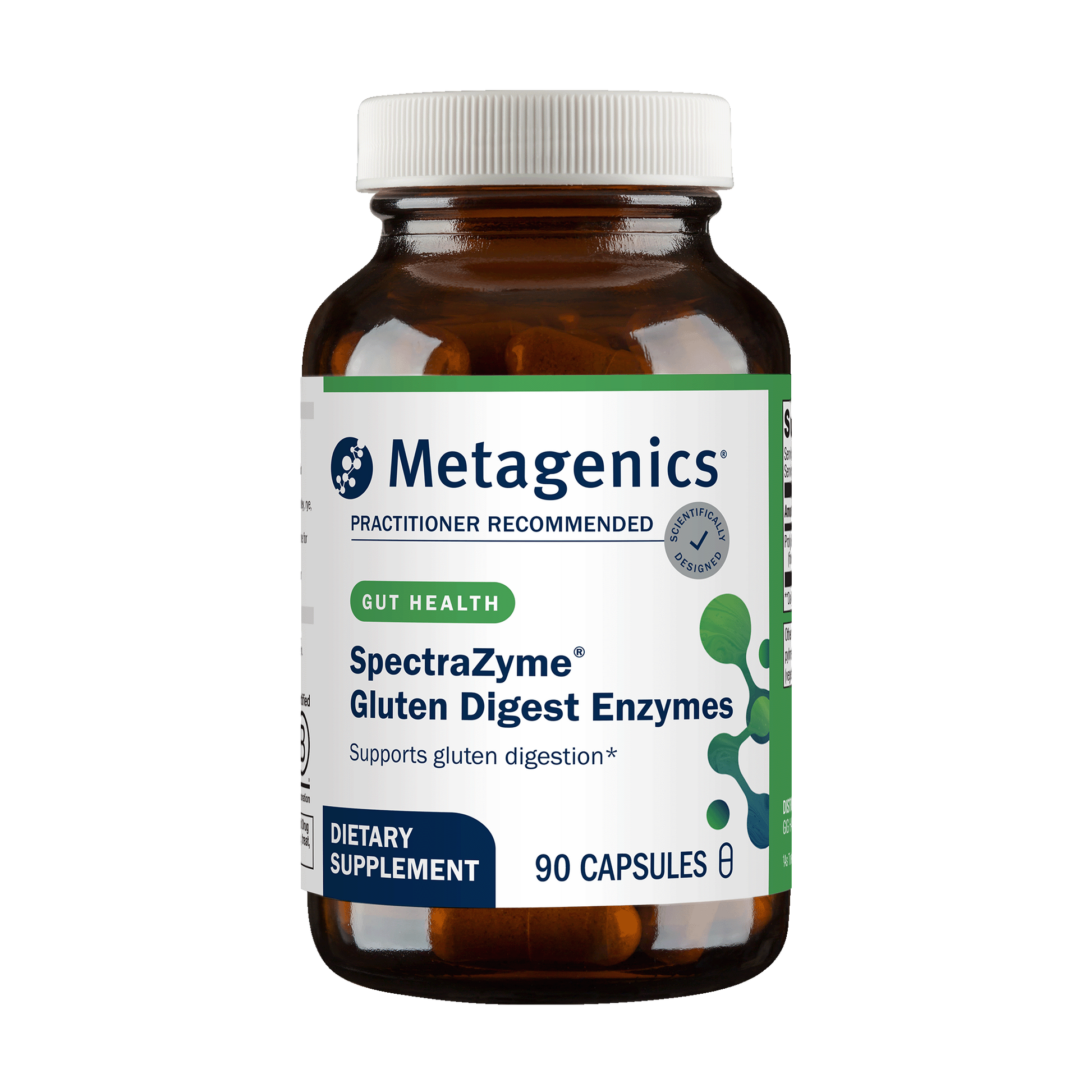 SpectraZyme Gluten Digest Enzymes—formerly known as SpectraZyme Gluten Digest—featuring Tolerase G, is a targeted protease enzyme supplement that has been clinically shown to help digest gluten in humans as well as in gastrointestinal and in vitro models. This formula helps promote the breakdown of gluten proteins in the stomach which may help support healthy digestion of wheat, barley, rye, and other sources. Human studies also indicate that Spectrazyme may help break down gluten proteins before they reach the small intestine, a key consideration in healthy digestion.