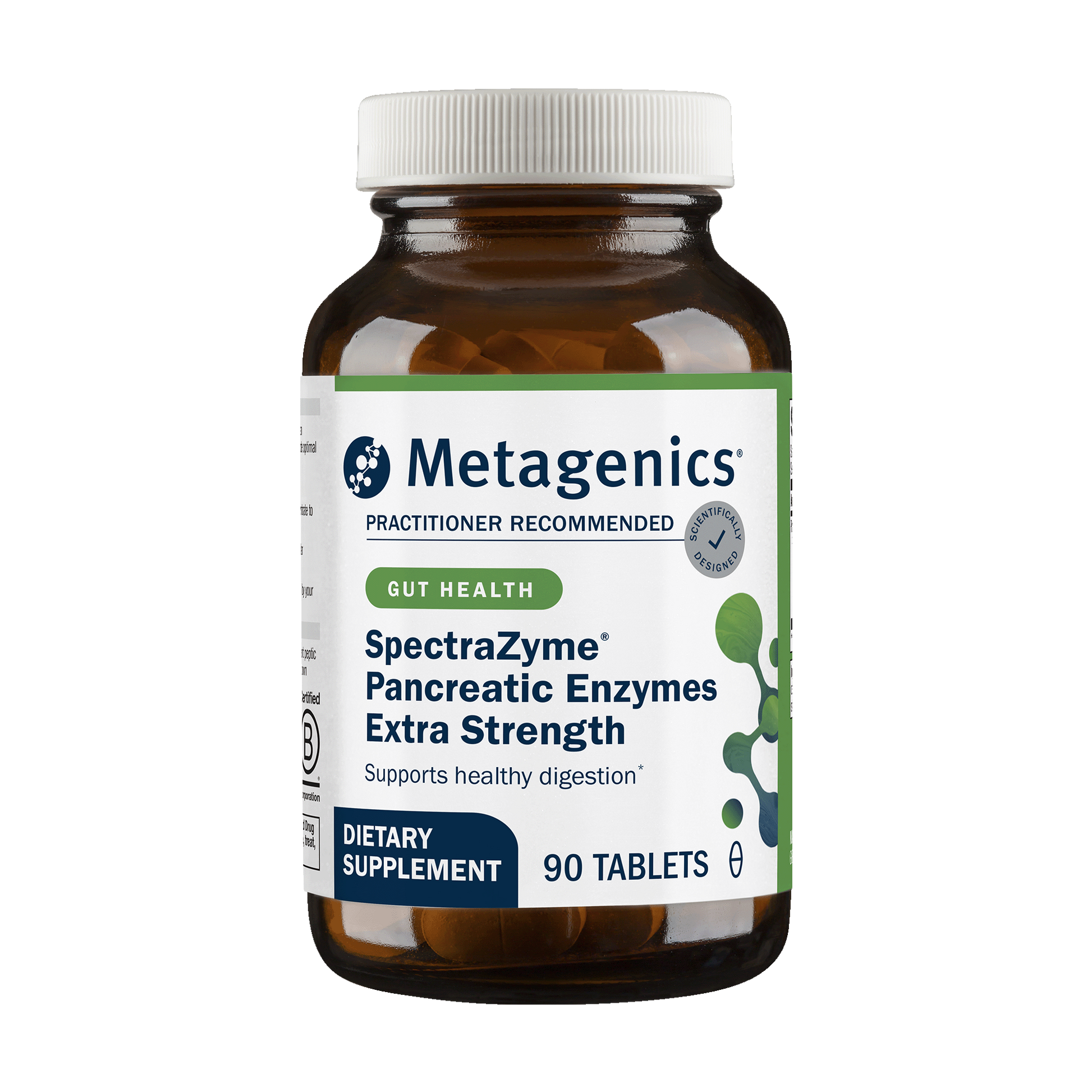 SpectraZyme Pancreatic Enzymes Extra Strength—formerly SpectraZyme Pan 9x ES—is a comprehensive enzyme complex that provides support for digestive function. The porcine pancreatic concentrate is processed under special conditions so that the delicate enzyme constituents remain intact. Provides twice the digestive enzyme strength of regular pancreatic enzymes.