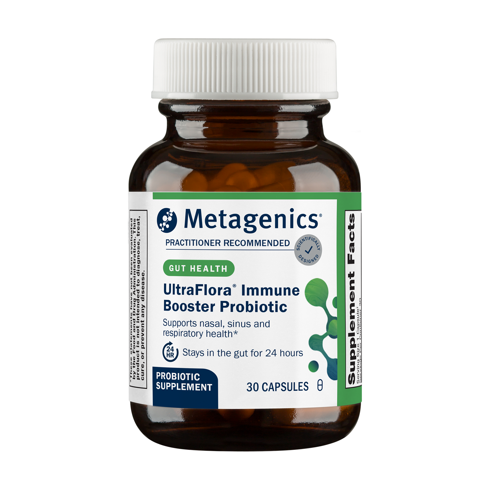 UltraFlora Immune Booster Probiotic provides a blend of highly viable, pure strains of “friendly” bacteria, Lpa 8700:2 and Lp Heal9, which support healthy nasal, sinus, and respiratory function.