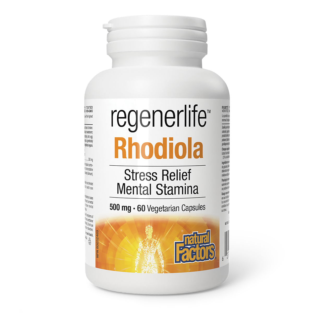 As we age, the impact of daily stress and mental fatigue can be increasingly difficult to overcome. Regenerlife Rhodiola is a herbal extract used to Assist Aid mental stamina in cases of fatigue. The roots of Rhodiola rosea have a rich history of use in herbal medicine for Assisting to increase energy and resistance to stress. Our non-GMO formula is standardized to 3% of rhodiola’s active salidrosides and is delivered in convenient vegetarian capsules.
