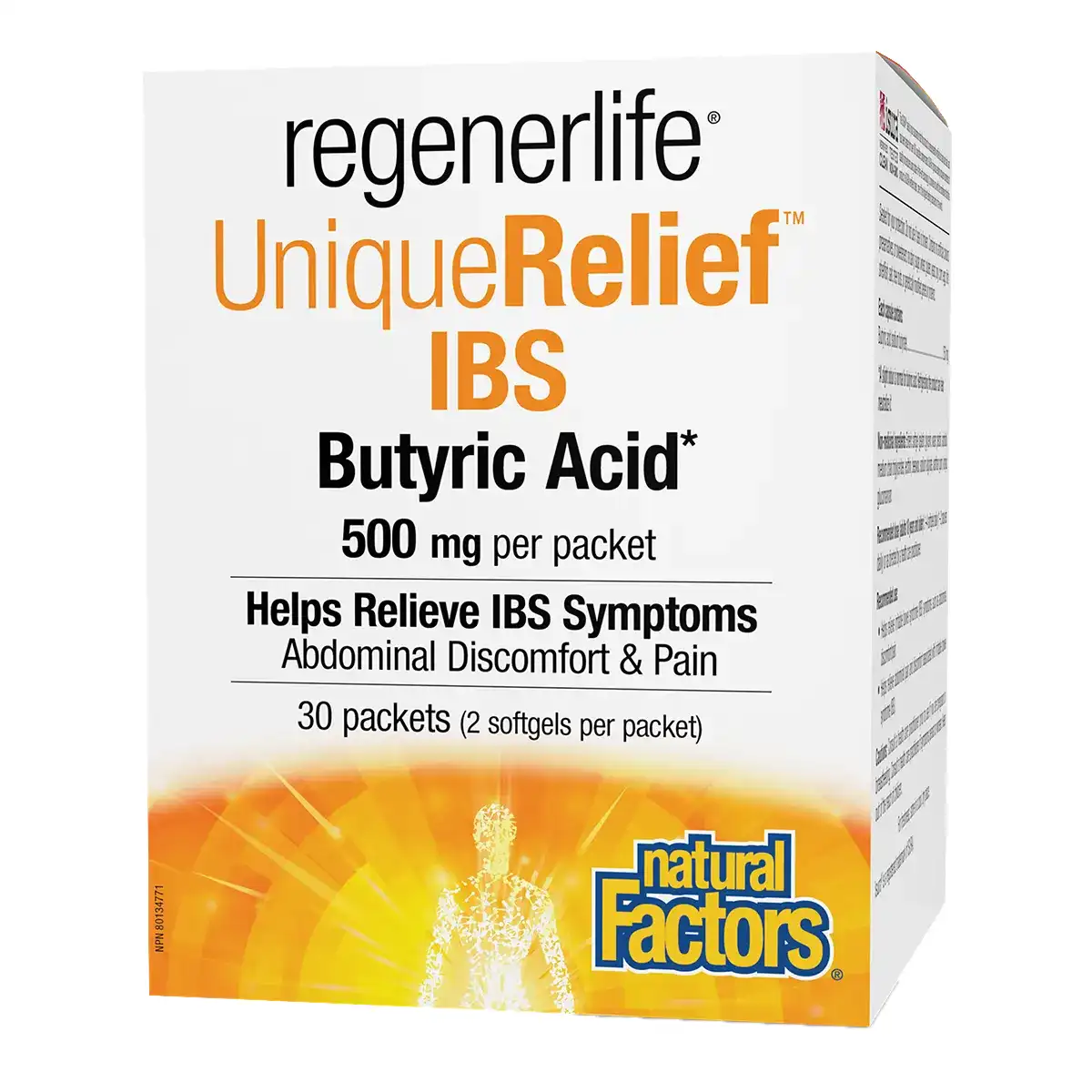 Frustrated with abdominal pain and discomfort from irritable bowel syndrome (IBS)? Meet Regenerlife UniqueRelief IBS Butyric Acid, a short-chain fatty acid supplement that may provide relief for IBS symptoms. Butyric acid serves as a primary energy source for intestinal cells within the gut lining. These enteric softgels come conveniently packaged, offering clinically studied levels of butyric acid for aging adults with IBS.