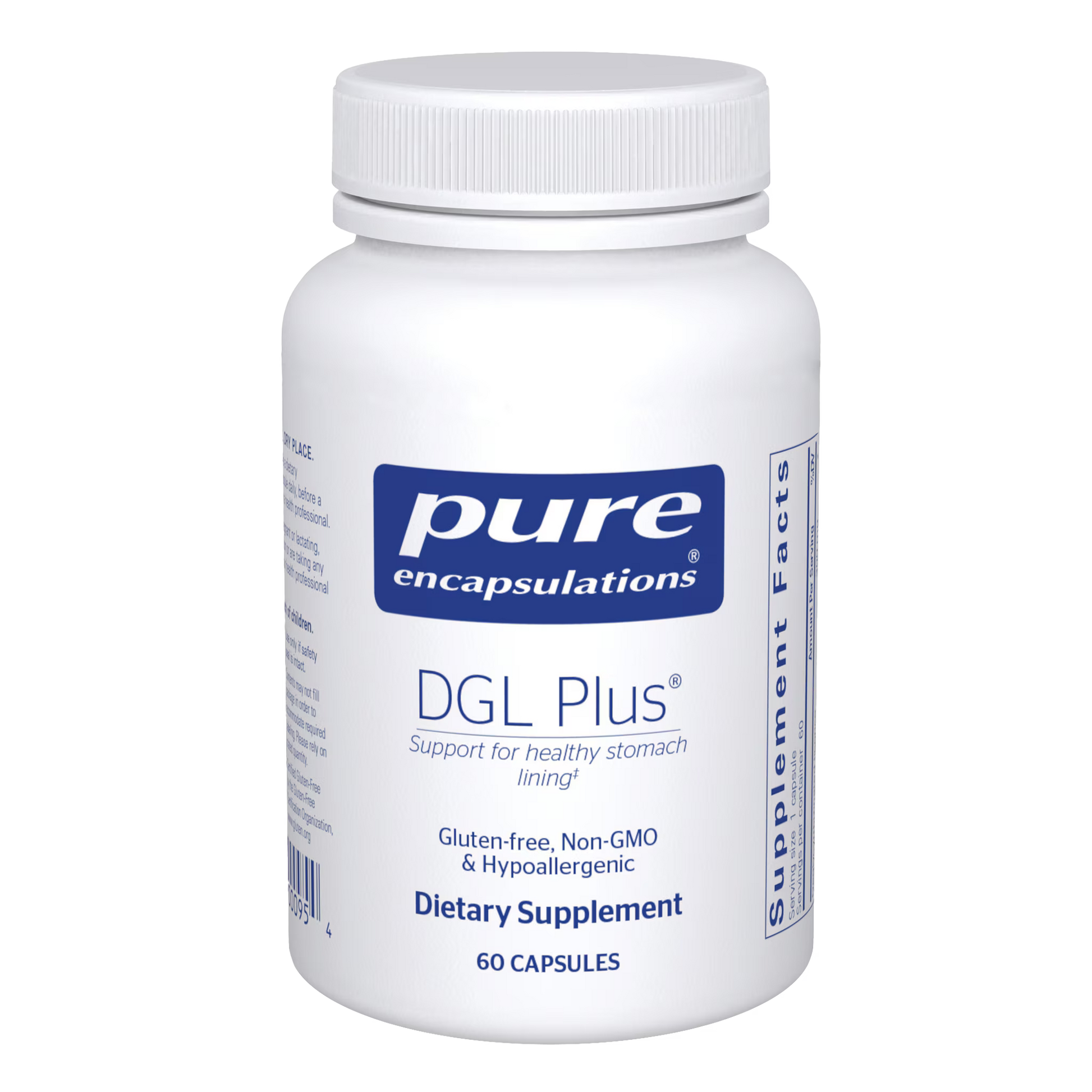 This combination of deglycyrrhizinated licorice (DGL) and herbal extracts provides nutritional support for the gastrointestinal tract. DGL Plus supports the body's natural defense mechanisms, in part by stimulating the mass, quality and production of mucus, a major component of the stomach's protective lining. DGL is free of side effects typically associated with licorice.