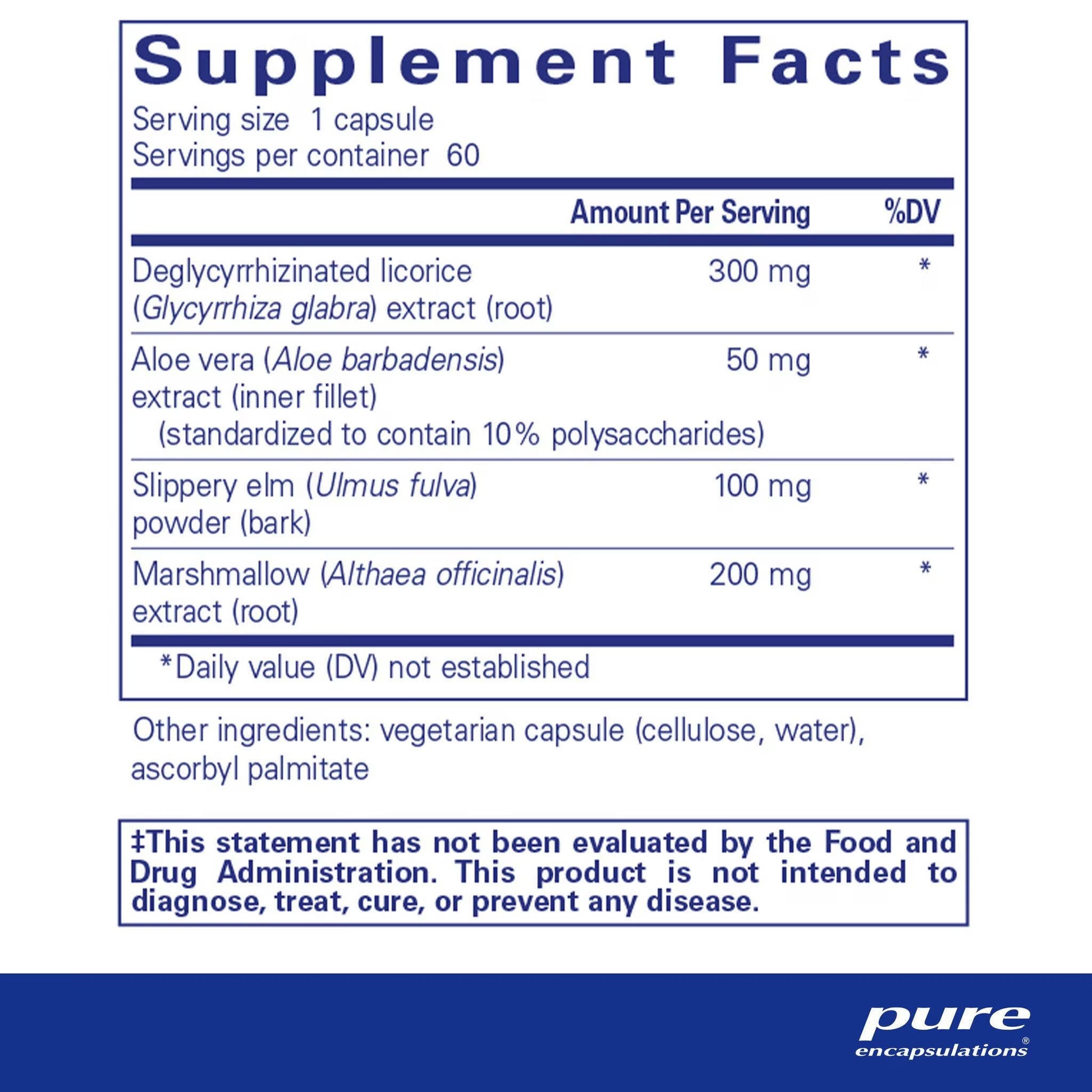 - Synergistic combination of deglycyrrhizinated licorice (DGL) and herbal extracts