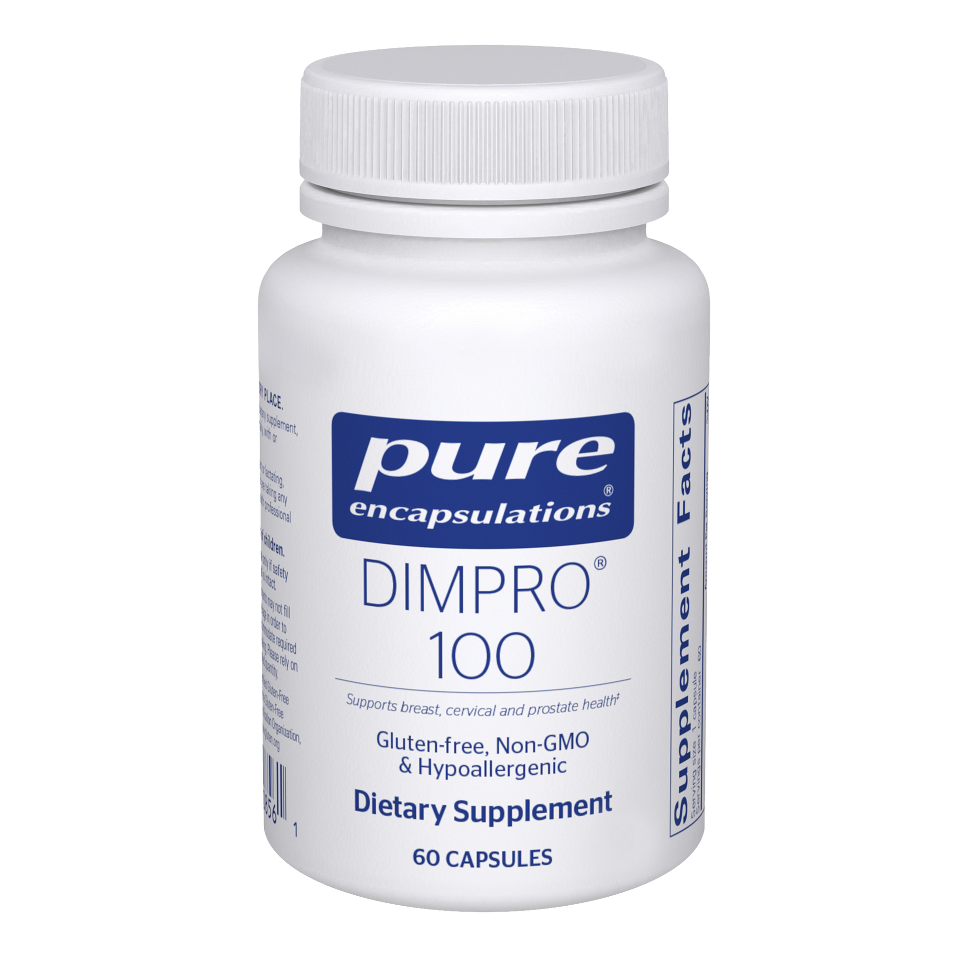 DIMPRO 100 contains BioResponse DIM (diindolylmethane complex). Diindolylmethane is a metabolite of indole-3-carbinol (I3C). Both are metabolites of glucosinolates found naturally in cruciferous vegetables like broccoli, kale and Brussels sprouts. Upon contact with gastric acid in the stomach, I3C is converted to a number of active compounds, predominantly diindolylmethane. Research indicates that diindolylmethane supports healthy cell cycle function and signal transduction to maintain breast, cervical and prostate cell health. In a double-blind, randomized clinical trial, BioResponse DIM revealed potential support for maintaining the function of healthy breast cells. Another randomized placebo-controlled crossover trial found that it promoted statistically significant breast comfort. Furthermore, an additional doubleblind, randomized clinical trial with 52 women found that BioResponse DIM supported cervical cell health. Diindolylmethane in its pure form is highly insoluble. Patented, microencapsulated BioResponse DIM has been specially developed for enhanced solubility and absorption. This form may be more supportive than I3C in cases of low gastric acidity.