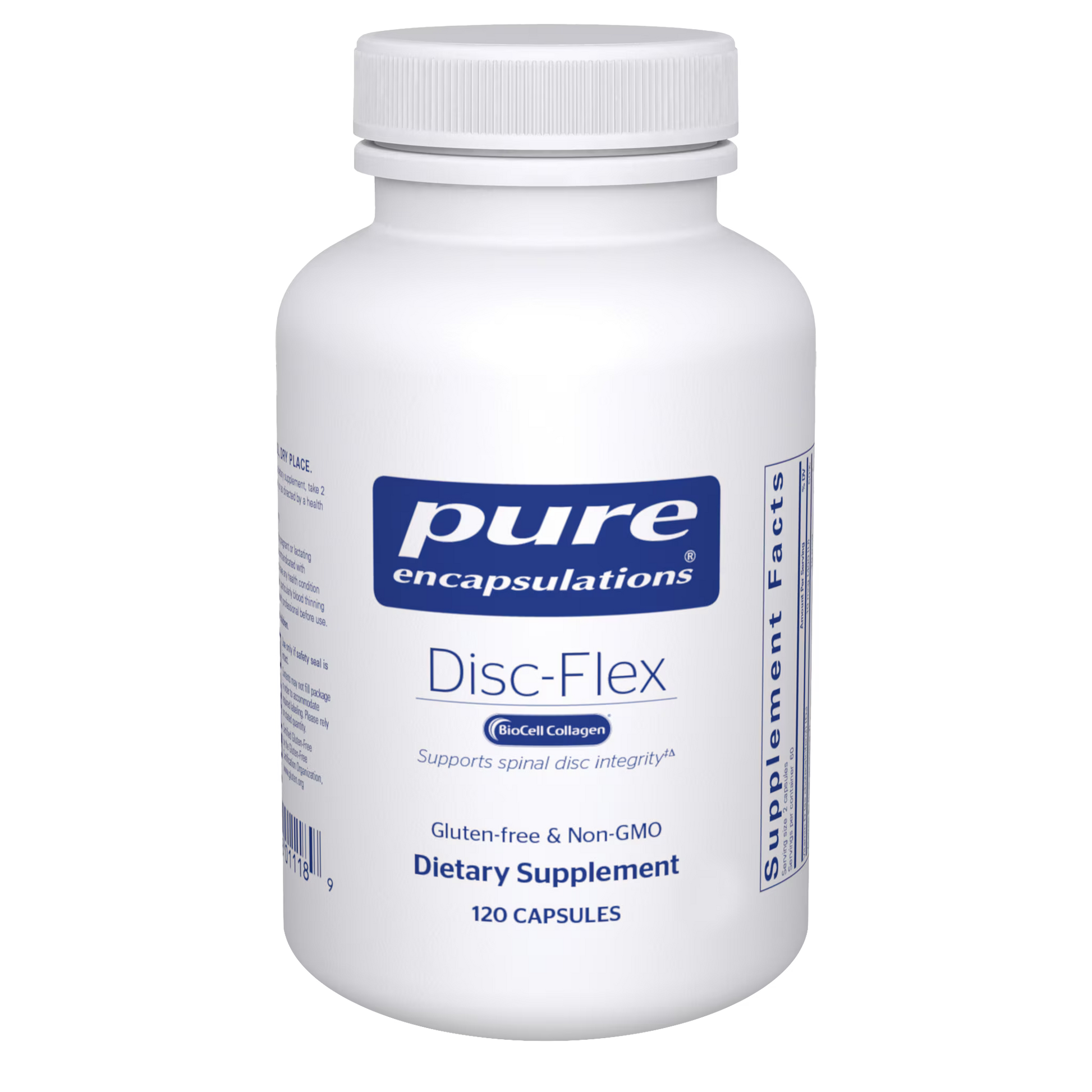 This formula addresses the unique nutritional needs of intervertebral cartilage (IVC). IVC is avascular, wears differently, and is affected by different nutritional factors compared to articular cartilage. The basics of healthy disc composition involve glucosamine, chondroitin and collagen. Glucosamine supports spinal disc integrity and has the potential to support the strength of the disc under compressive loads. In postmenopausal women, the healthy composition of the lumbar spine is directly related to collagen content. This formula may also support healthy advanced glycation end product activity, healthy immune mediator activity and healthy calcium metabolism. Advanced glycation end products may reduce the ability of the intervertebral disc to produce proteoglycans, which comprise healthy disc matrix. The age-related increase in advanced glycation end products also contributes to stiffening of the spine. l-Carnosine, grape seed extract and alpha lipoic acid help to maintain healthy advanced glycation end product metabolism and provide antioxidant protection. Cartilage end plate calcification also affects disc function and longevity. Vitamin K2 as menaquinone-7 also maintains a healthy balance of calcium uptake into extra-skeletal tissues. Devil's claw supports day-to-day spinal comfort and flexibility as demonstrated by German studies, while boswellia offers key support for musculoskeletal comfort.