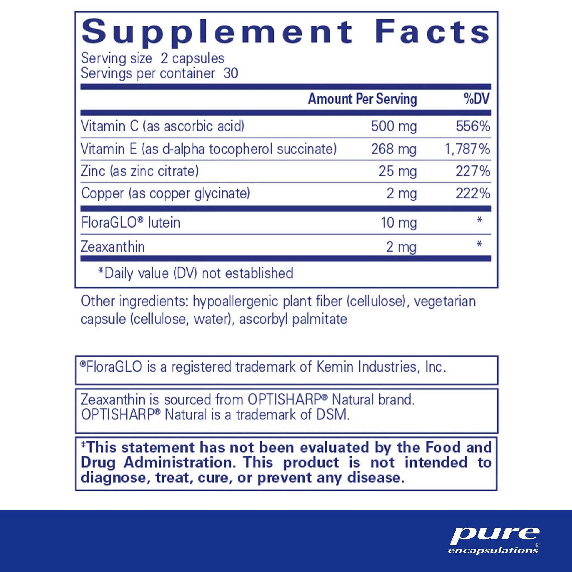 Benefits & Features Supports healthy vision and the integrity of the eye Helps maintain the health of the retina and macula Offers support for photo receptor health and color vision Contains clinically researched levels of these nutrients in optimally bioavailable...
