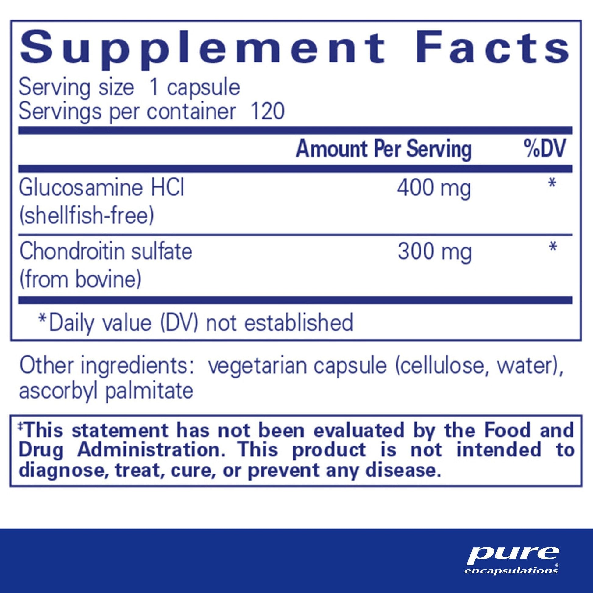 Glucosamine promotes the synthesis of the glycosaminoglycan chondroitin. Studies have indicated that glucosamine HCl has the ability to support healthy cartilage integrity, in part by maintaining healthy matrix metalloproteinase (MMP) enzyme activity. Chondroitin sulfate is responsible for building molecules known as proteoglycans, the ground substance of cartilage. In addition, it maintains healthy enzyme activity in the cartilage matrix, supporting cartilage integrity, and may provide synergistic support when combined with glucosamine. Studies suggest that the combination of glucosamine HCl and chondroitin sulfate have positive effects on joint mobility and comfort.