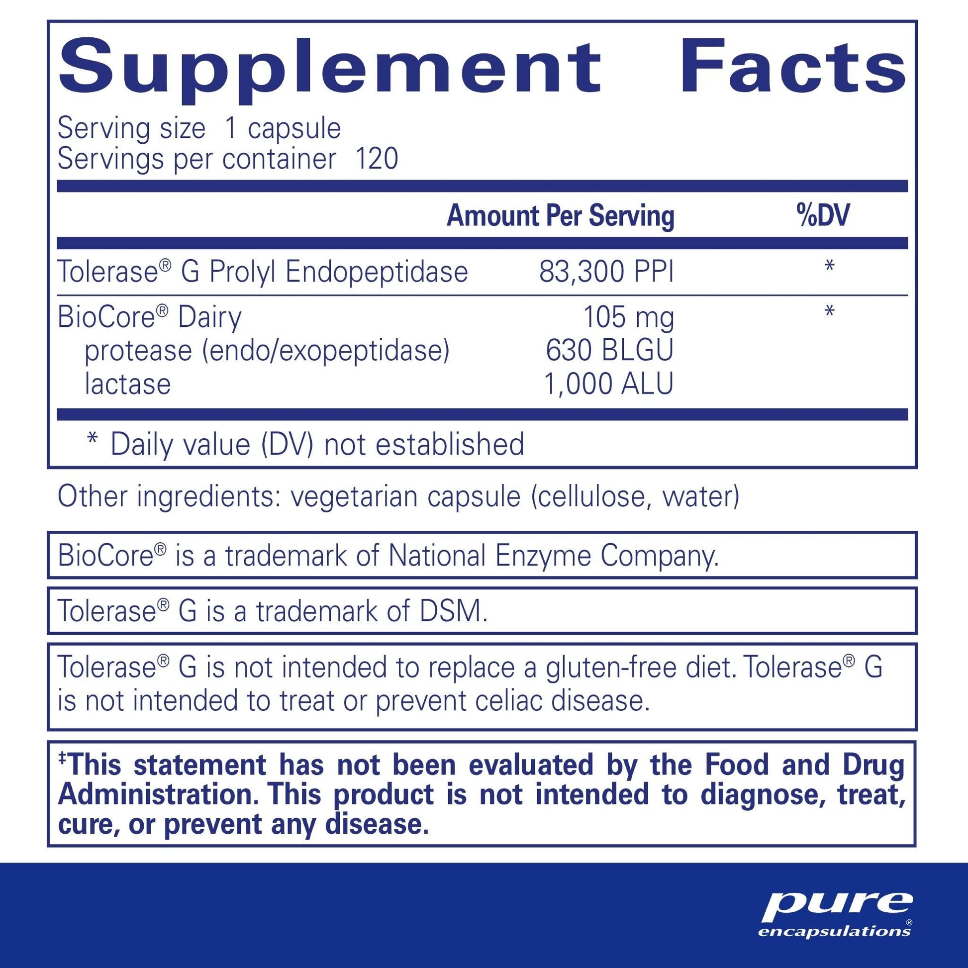 - Offers the unique, clinically researched Tolerase G prolyl-endopeptidase enzyme at the level designed to target the breakdown of 500 mg gluten