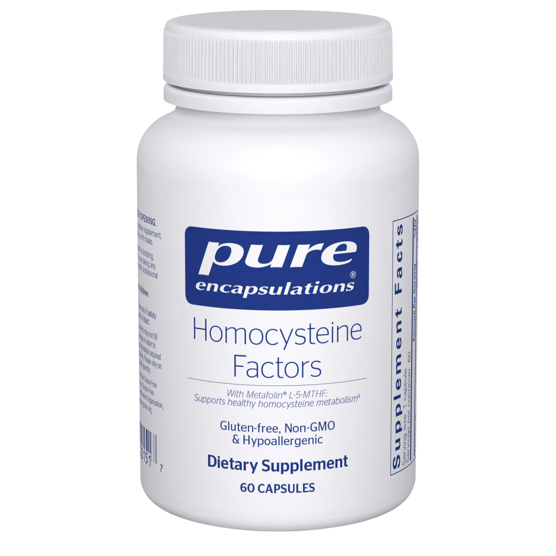 Clinical studies show that folate, vitamin B12 , and vitamin B6 are vital in the metabolism of homocysteine. Vitamin B12 and folate (L-5-MTHF) are required by the enzyme that converts homocysteine back to methionine. Vitamin B6 is required in each of the two enzymatic reactions that convert homocysteine to cysteine. Betaine, in the form of trimethylglycine, is included in this supplement to promote the methylation of homocysteine. Homocysteine Factors provides vitamin B6 , vitamin B12 , folate and betaine, a highly bioavailable combination of nutrients integral to maintaining healthy homocysteine metabolism and cardiovascular health.