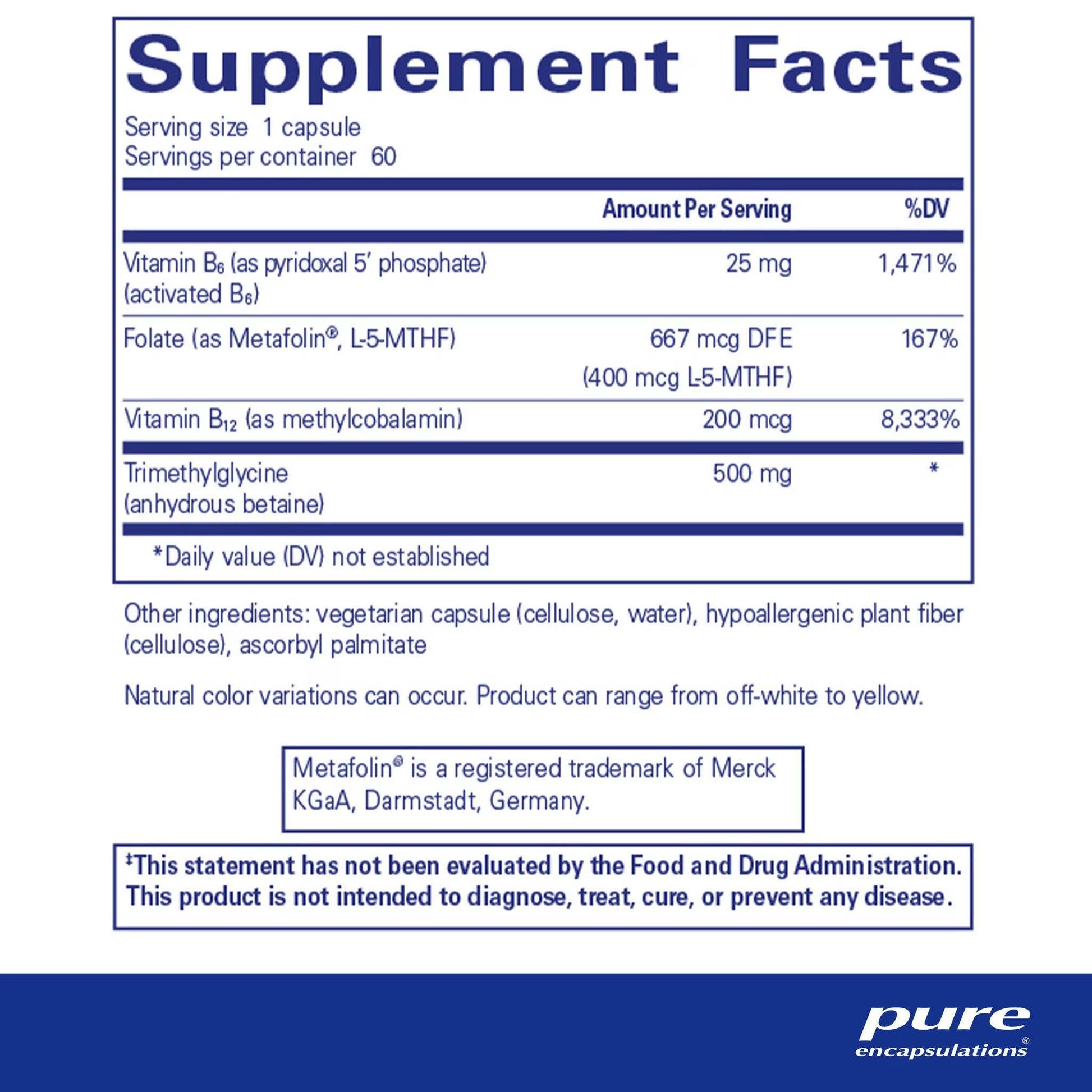 - Provides a highly bioavailable combination of vitamin B6 , vitamin B12 , folate and betaine