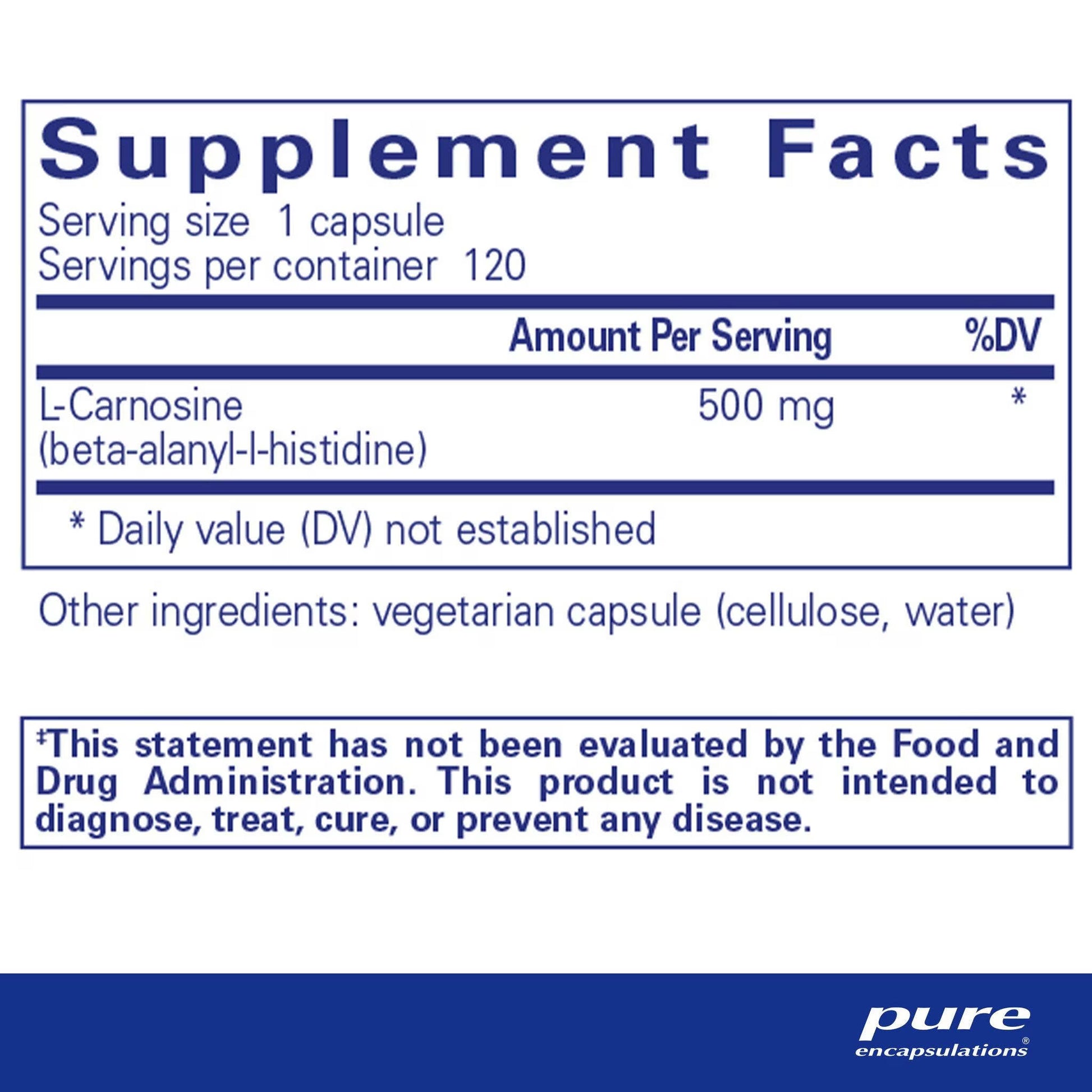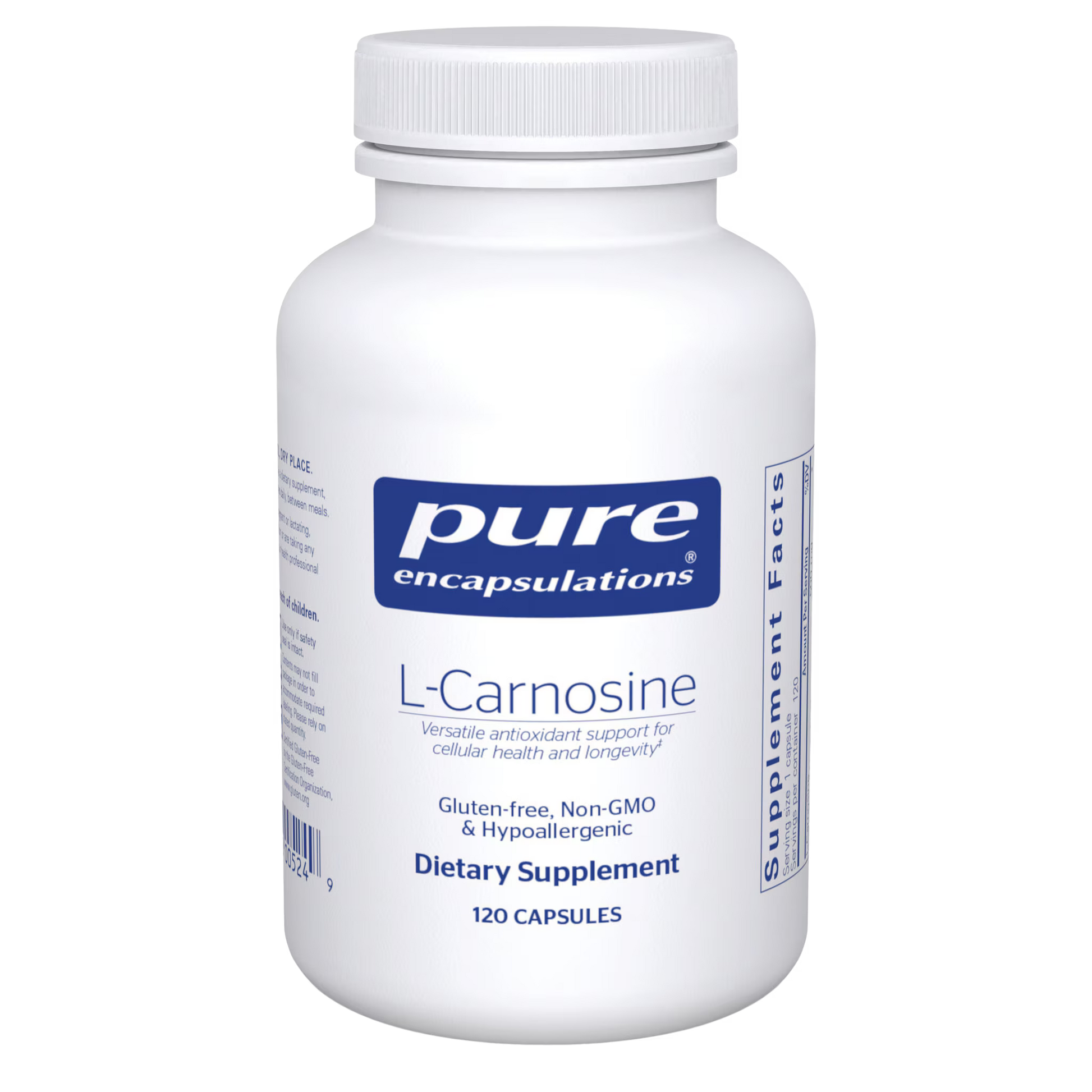 l-Carnosine (beta-alanyl-L-histidine) occurs naturally in the body's muscle and nervous tissues and is formed by the amino acids alanine and histidine. Levels of this dipeptide can decline with age. It is a water-soluble antioxidant and promotes cell health and cell longevity. In vitro, L-carnosine maintains healthy advanced glycation end-product, or AGE, activity. These end-products are formed when aldehydes (such as aldose and ketose sugars) and lipid peroxidation by-products bind to proteins. L-Carnosine plays a role in maintaining DNA integrity. L-Carnosine may also support superoxide dismutase activity. In addition, L-carnosine may help to maintainhealthy peptide metabolism in the brain and its membrane-stabilizing properties support cellular health in the cardiovascular system. Some evidence suggests that the concentration of L-carnosine isan important factor in high-intensity exercise performance.