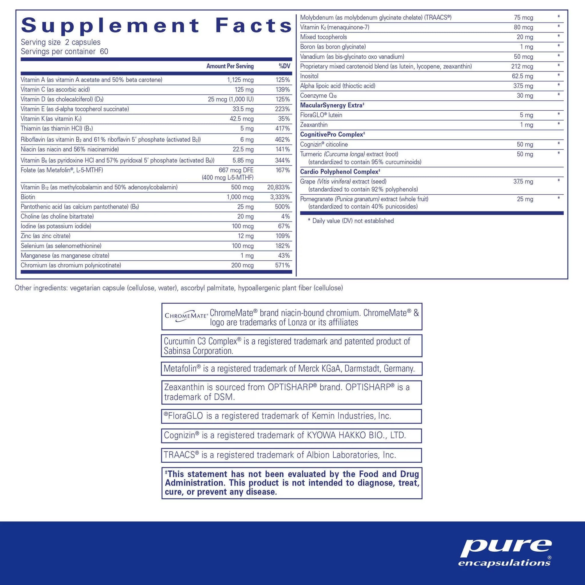 Benefits & Features Provides support for cognitive function and cardiovascular health Supports cellular, bone and heart health Promotes healthy brain cell function and blood vessel function Offers advanced macular and retinal protection Easy-to-swallow capsule size Convenient 4-capsule daily dose Made...