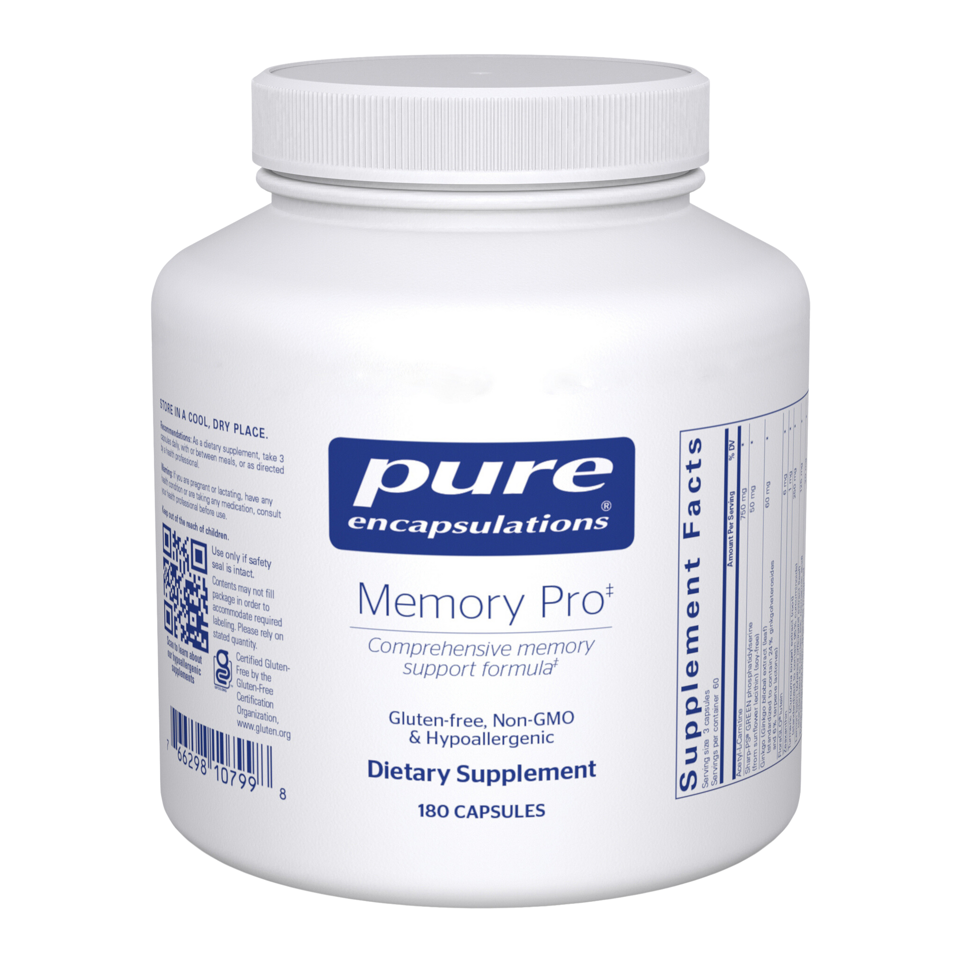 This formula combines acetyl-l-carnitine, phospholipids and herbal extracts to promote neural health, cognitive function and memory. Research suggests that acetyl-l-carnitine supports memory in older adults. Phosphatidylserine is an important cell membrane component critical for neuron function and communication. Research suggests that it promotes healthy neurotransmitter levels and spatial memory. The Ayurvedic herb Bacopa monniera promotes memory as well as mental function and information processing. Ginkgo biloba promotes cerebral blood flow, vascular integrity and healthy red blood cell and platelet function in the brain. Lutein and zeaxanthinare the primary carotenoids in the macula, but also have been identified as the primary carotenoids in the brain. Research studies have found a positive association between lutein and zeaxanthin intake, macular pigment density and cognitive function. This association is believed to be due to antioxidant defense and cytokine balance properties, helping to promote neuronal membrane stability and function. Curcumin, resveratrol and lemon balm extracts help to protect neurons from oxidative stress. Additionally, curcuminoids and resveratrol support healthy vascular tissue in the brain by promoting phagocytosis and proteosome activity. The soothing properties of lemon balm are highlighted in a double-blind, randomized, placebo-controlled trial, indicating that it promoted relaxation and cognitive function in elderly individuals.
