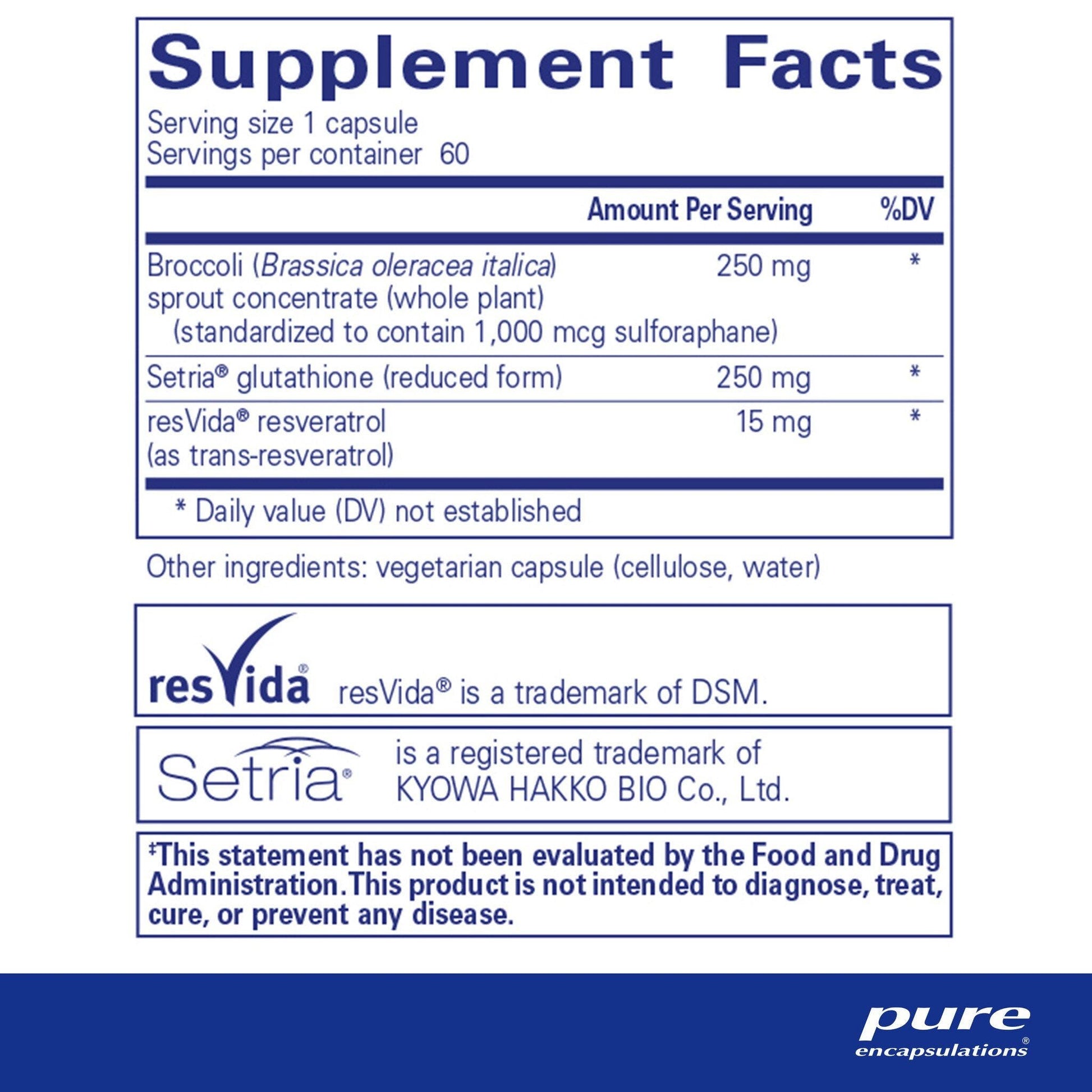 Cruciferous vegetables of the Brassica family have long been recognized for their ability to support detoxification, thereby maintaining healthy cells and tissues. Cruciferous vegetables, like broccoli, cauliflower, Brussels sprouts and kale, are the richest sources of glucosinolates, which are considered to be the most bioactive constituents. Glucosinolates are converted in the body to isothiocyanates after they are ingested and hydrolyzed. The isothiocyanate sulforaphane is one of the most effective activators of phase II detoxification, which occurs primarily in the gut and the liver. Sulforaphane and resveratrol promote the activity of nuclear factor erythroid 2-related factor 2 (Nrf2), a transcription factor that supports robust, long-lasting expression of numerous genes responsible for phase II detoxification and protection against oxidative stress. Among these genes are glutathione peroxidase, superoxide dismutase and various phase II enzymes, such as glutathione sulfotransferases. Nrf2 also supports expression of glutathione glutamylcysteinyl ligase, which is responsible for a critical step in the biosynthesis of glutathione, a vital component of cellular antioxidant and detoxification systems. Found in virtually every cell of the body glutathione plays essential roles in protein synthesis, synthesis and repair of DNA, enzyme function, transport and cell maturation. Optimal levels of glutathione have been associated with physical and mental health. The highest concentration of glutathione is found in the liver, where it offers antioxidant support, protects tissue and maintains detoxification. In a randomized clinical trial, supplementation with 250 and 1,000 mg of Setria glutathione per day increased glutathione levels in the blood after one, three and six months. At six months, mean glutathione levels in the high-dose group increased 30-35% in erythrocytes, plasma and lymphocytes, and 260% in buccal cells (p<0.05). In the low-dose group, mean glutathione levels increased 17% and 29% in blood and erythrocytes, respectively (p<0.05). Both glutathione dose groups showed support for antioxidant defenses, indicated by decreases in the oxidized-to-reduced-glutathione ratio in whole blood after six months.