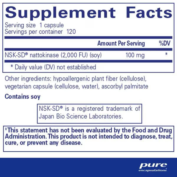 Benefits & Features Helps maintain the body's natural fibrinolytic processes Promotes healthy blood flow Supports healthy clotting function Based on traditional Japanese practices Small capsules for easy swallowing Made with vegan ingredients   Nattokinase, a fibrinolytic enyzme isolated from Japanese...