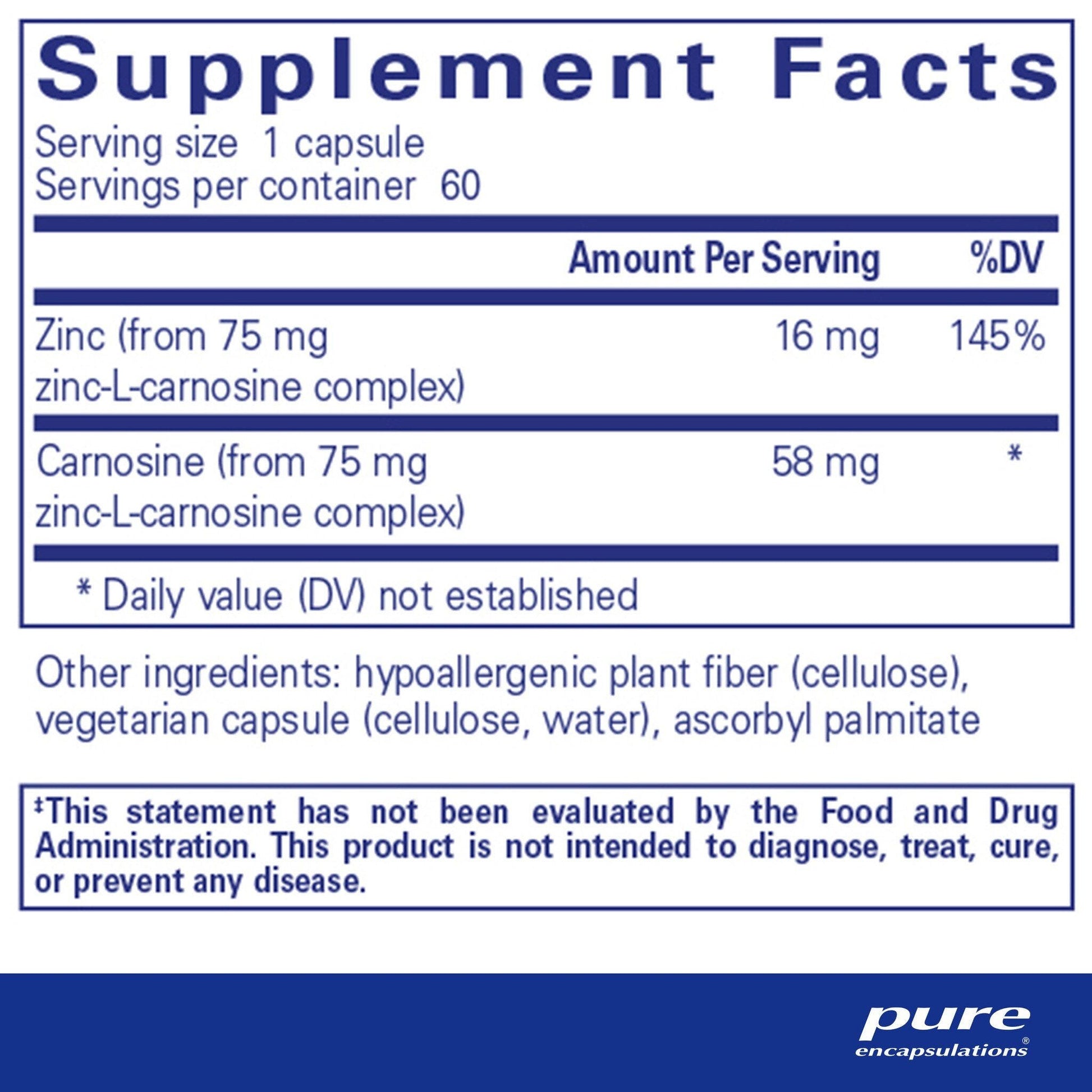 - Patented, 1:1 chelate of zinc and l-carnosine provides synergistic G.I. mucosal protection