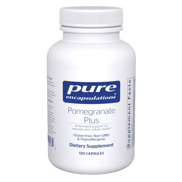 Pomegranate Plus offers the clinically researched Pomella pomegranate extract, manufactured using patented technology to concentrate punicalagin and polyphenols. These components, as well as their metabolites in the body, contribute to the antioxidant and cellular support properties of pomegranate. In vitro, Pomella pomegranate was shown to rank highest in antioxidant activity compared to other antioxidant products, including green tea, grape seed extract, resveratrol, and goji. Antioxidant efficacy was also demonstrated in a human pharmacokinetic study, in which 800 mg of Pomella pomegranate increased ORAC (oxygen radical absorbance capacity) by 32% after 0.5 hours. Preliminary research also suggests that the gut-derived metabolites called urolithins may penetrate the blood-brain barrier, offering potential neuroprotective properties. These same may support healthy glucose metabolism. Through a variety of mechanisms, pomegranate supports vascular endothelial functionand healthy blood flow. PhytoCardio proprietary blend provides fruit extracts from cranberry and blueberry, which provide antioxidant support. The prized palm berry açai of Brazil, where it is known as "the fruit of life", is recognized for its unique antioxidant profile.