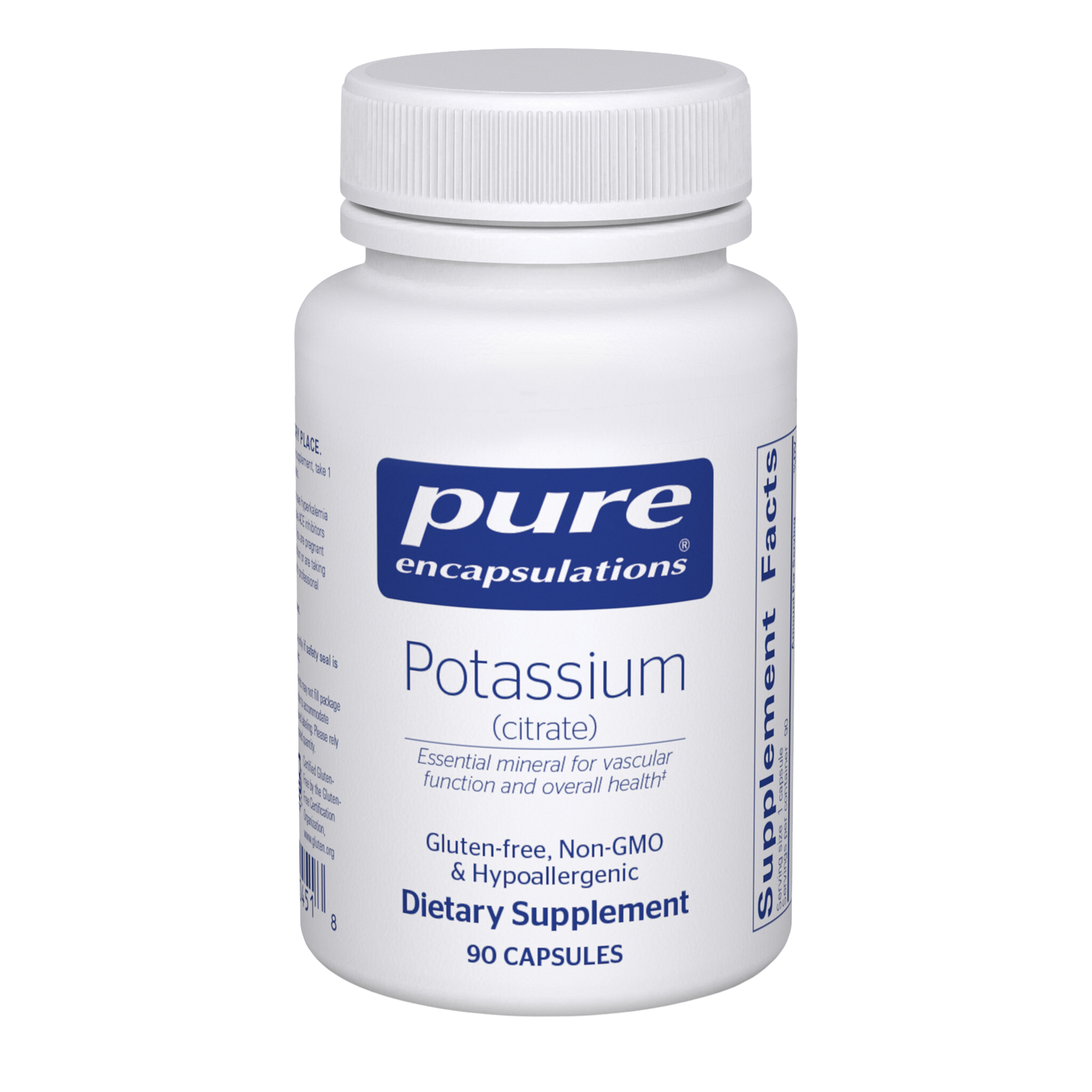 Potassium activates many enzymatic reactions and is essential to a number of physiologic processes, including transmission of nerve impulses, muscle contraction, gastric secretions, renal function, tissue synthesis, and carbohydrate metabolism. Potassium is the major cation of intracellular fluid and is essential for maintenance of acid-alkaline balance, isotonicity, and electrodynamic characteristics of the cell. In addition, it works with sodium to maintain healthy water balance, heart rhythm and nerve and muscle function. Research suggests that adequate potassium intake may support healthy blood flow and cardiovascular health.