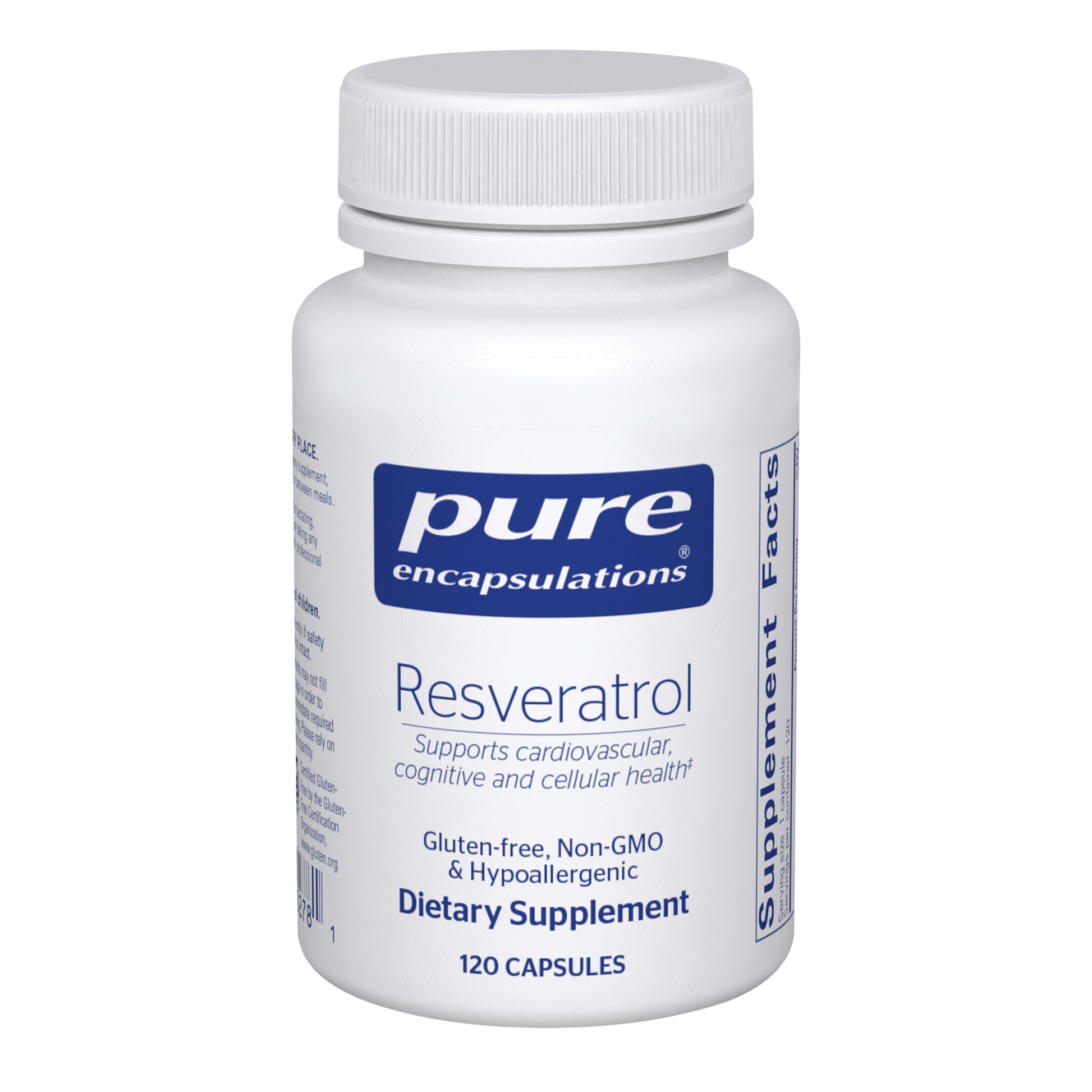 Resveratrol is a compound often associated with the health benefits of red wine because of its antioxidant and cardioprotectant properties. Resveratrol promotes cardiometabolic, neuronal and cellular health through a variety of effects on cell signaling, mitochondrial function and endogenous antioxidant defenses. It also promotes healthy platelet function and maintains healthy arachidonic acid metabolism. Pure Encapsulations Resveratrol is a clinically studied extract of Polygonum cuspidatum, an herb utilized for centuries. In a 6-week, randomized, placebo-controlled study of healthy subjects, one capsule of Pure Encapsulations Resveratrol (40 mg/day) provided significant support for antioxidant markers and cytokine balance. In a subsequent clinical study, 6 weeks of daily supplementation with this product (40 mg/day) improved cytokine balance in elite athletes subjected to rigorous training.