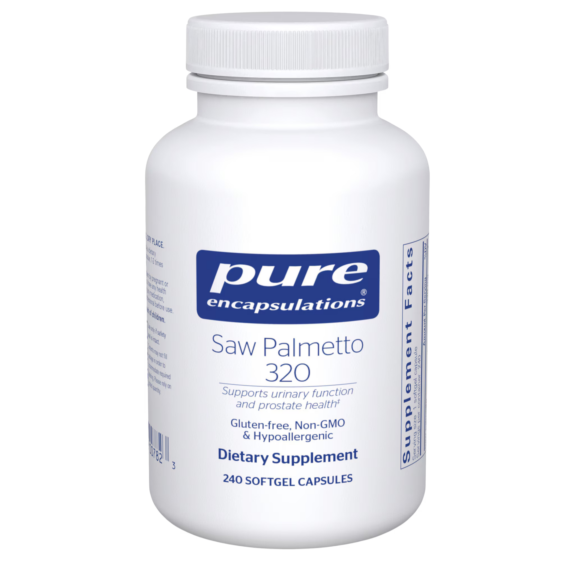Saw Palmetto 320 supports healthy prostate and urinary function. In countries like New Zealand, France, Germany and Austria, this herb has been the gold standard for prostate support for many years. Its primary mode of action involves supporting healthy testosterone metabolism, in part by maintaining healthy 5-alpha-reductase enzyme activity and receptor binding. A meta-analysis of 18 randomized controlled trials involving almost 3,000 men also reported urologic benefits and healthy urinary function with saw palmetto. Similarly, a three-year German study demonstrated favorable effects on urinary function in volunteers.