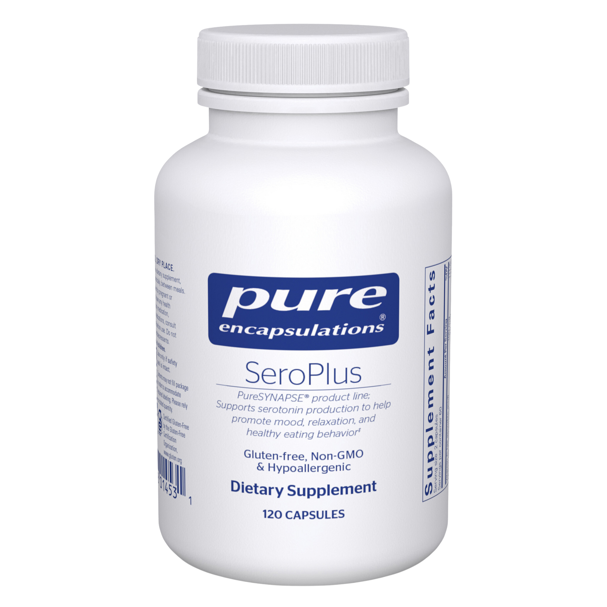 SeroPlus promotes serotonin synthesis to support relaxation, moderate occasional stress and maintain healthy eating behavior. This formula provides the serotonin precursor, 5-HTP, and inositol, which supports healthy sensitization of serotonin receptors. Taurine also supports healthy serotonin activity, potentially by maintaining healthy reuptake. Niacinamide and zinc enhance 5-HTP availability. This formula includes the cofactors magnesium, vitamin C, vitamin B6 and Metafolin L-5-MTHF to support serotonin production and positive mood. In a randomized, controlled trial involving elderly individuals, magnesium offered statistically significant support for positive mood. In another double-blind, randomized and placebo-controlled trial involving young women, zinc supplementation offered statistically significant support for positive mood.