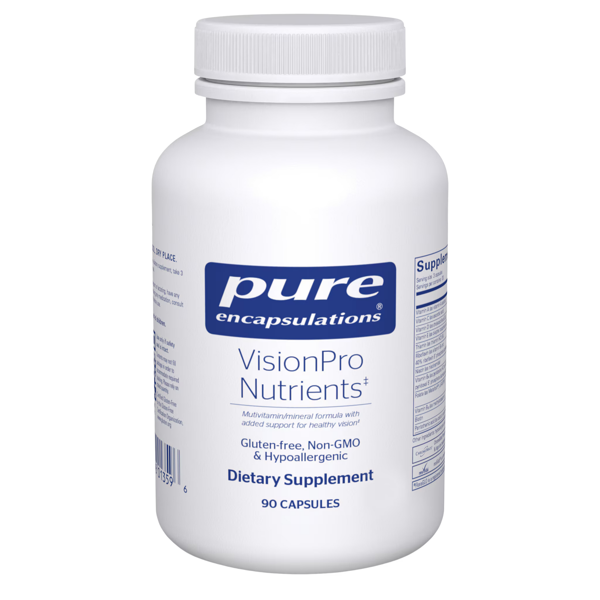VisionPro Nutrients is a gentle formula providing a comprehensive profile of highly bioavailable vitamins, fully chelated minerals and antioxidants to support eye integrity, healthy visual function and overall health. The importance of nutrients for eye health has been particularly evident since the publication of a long-term multicenter, prospective study involving more than 5,000 individuals ages 55-80. The study revealed that high amounts of vitamin C, vitamin E, zinc and copper support the health of the retina and macula. Additional research suggests that optimal vitamin D levels may also promote macular health.