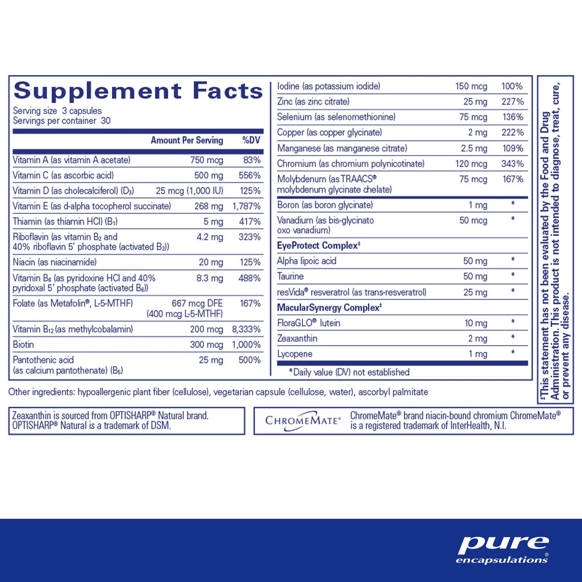 - Supports visual function and healthy photoreceptor activity with taurine, alpha lipoic acid and resveratrol.
