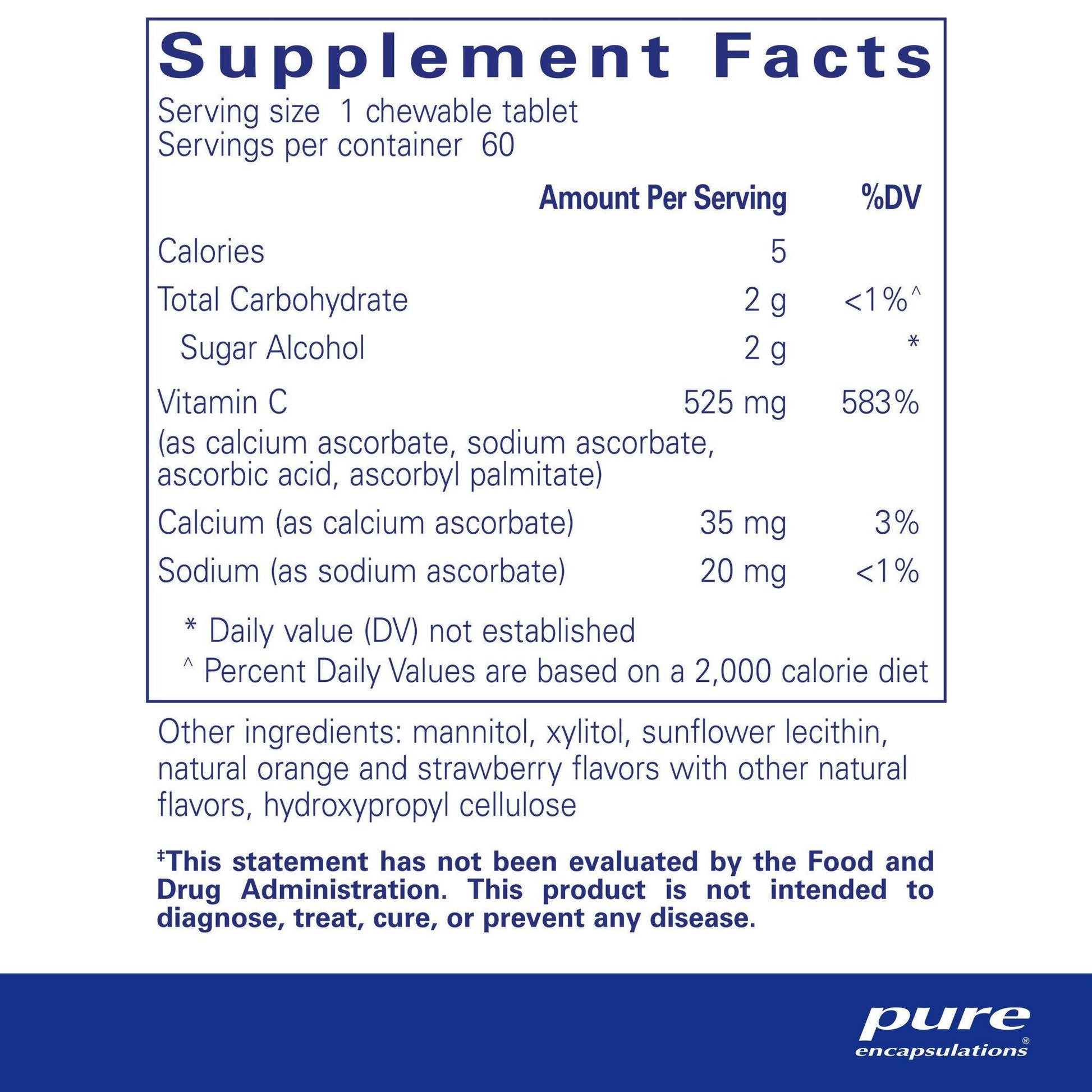 - One tablet of Vitamin C chewables contains the same amount of vitamin C found in eight oranges