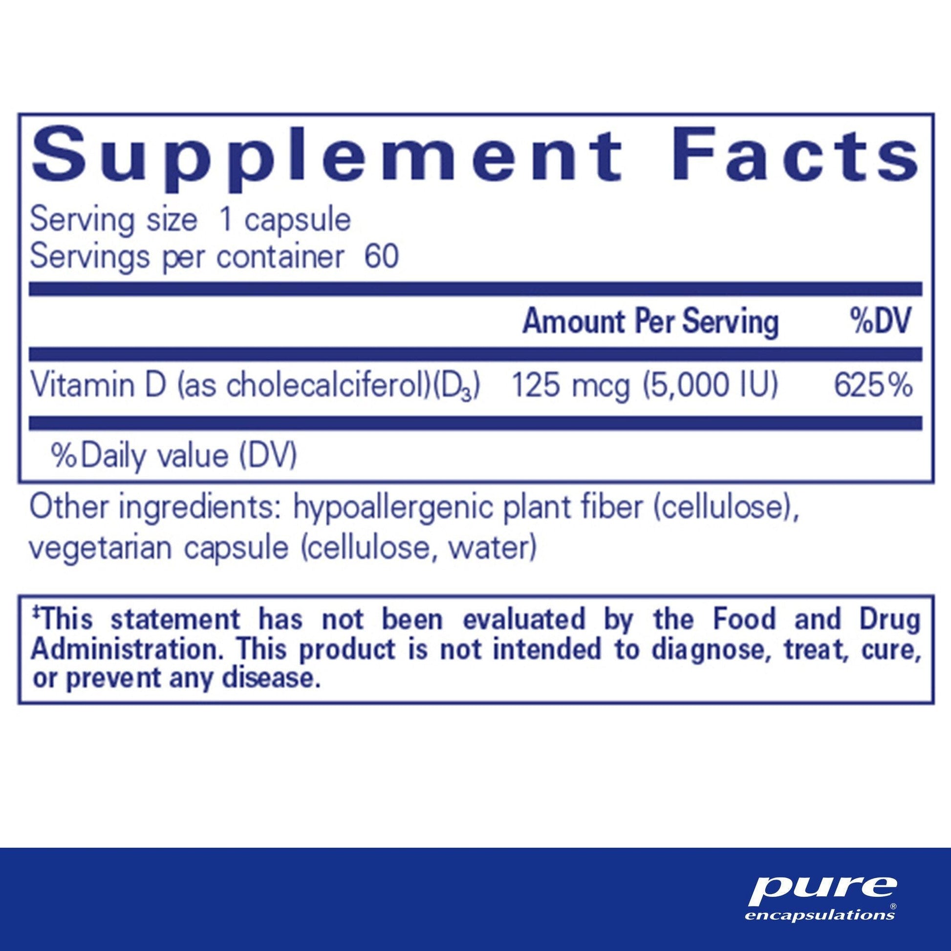 Pure Encapsulations Vitamin D3 125 mcg (5,000 IU) 30 Capsules
