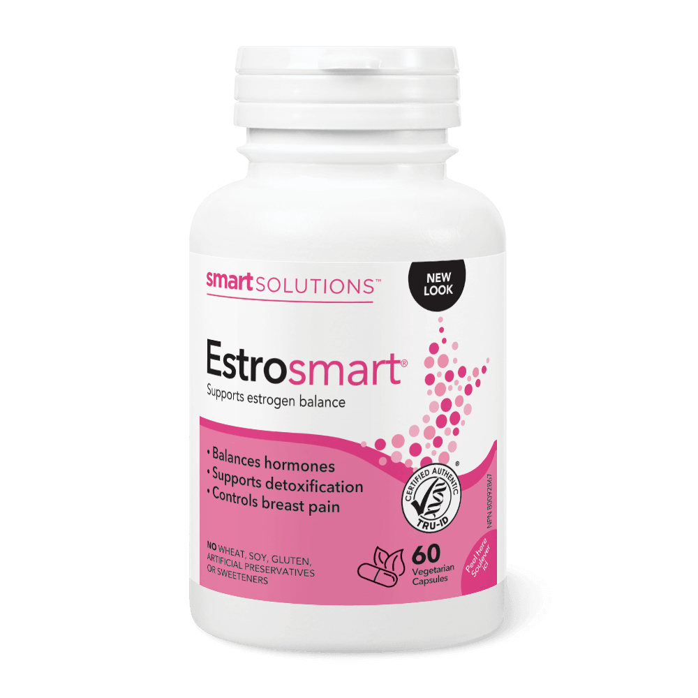 Estrosmart supports the production of desirable estrogen metabolism, which helps maintain healthy estrogen-to-progesterone balance. Liver supportive herbs assist in the detoxification pathways necessary for optimum hormone balance. Age, health, genetics, lifestyle and environmental factors all influence the delicate interplay of our hormones. The nutrients found in Estrosmart help maintain a healthy estrogen-to-progesterone balance and provide antioxidants and factors for BPA detoxification.